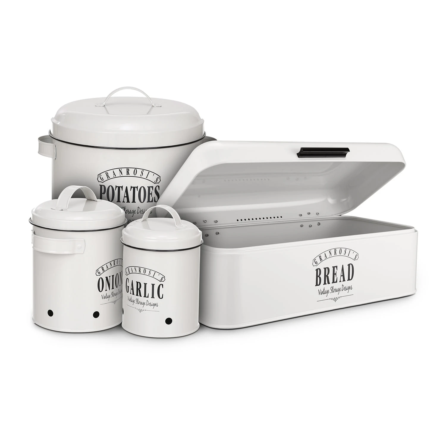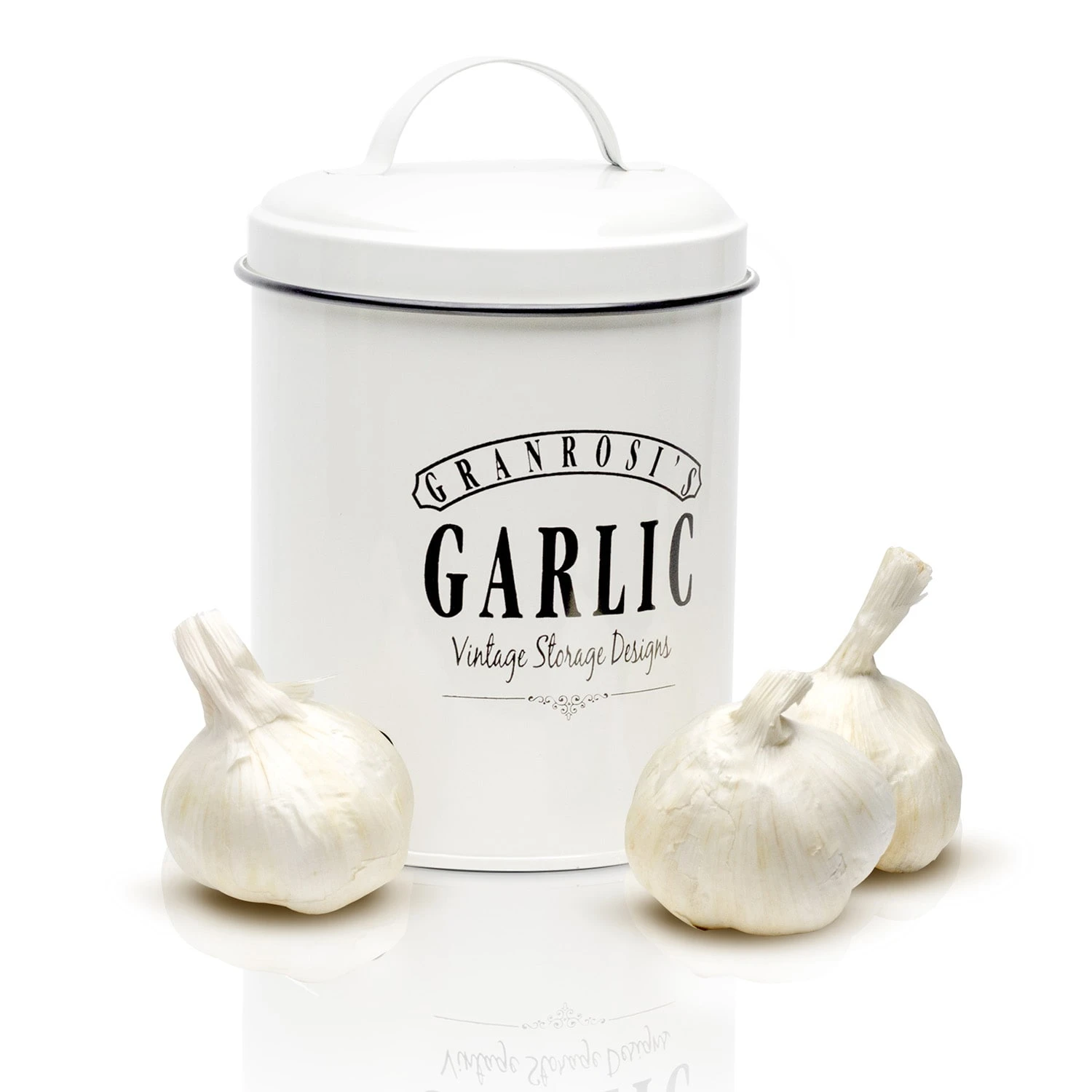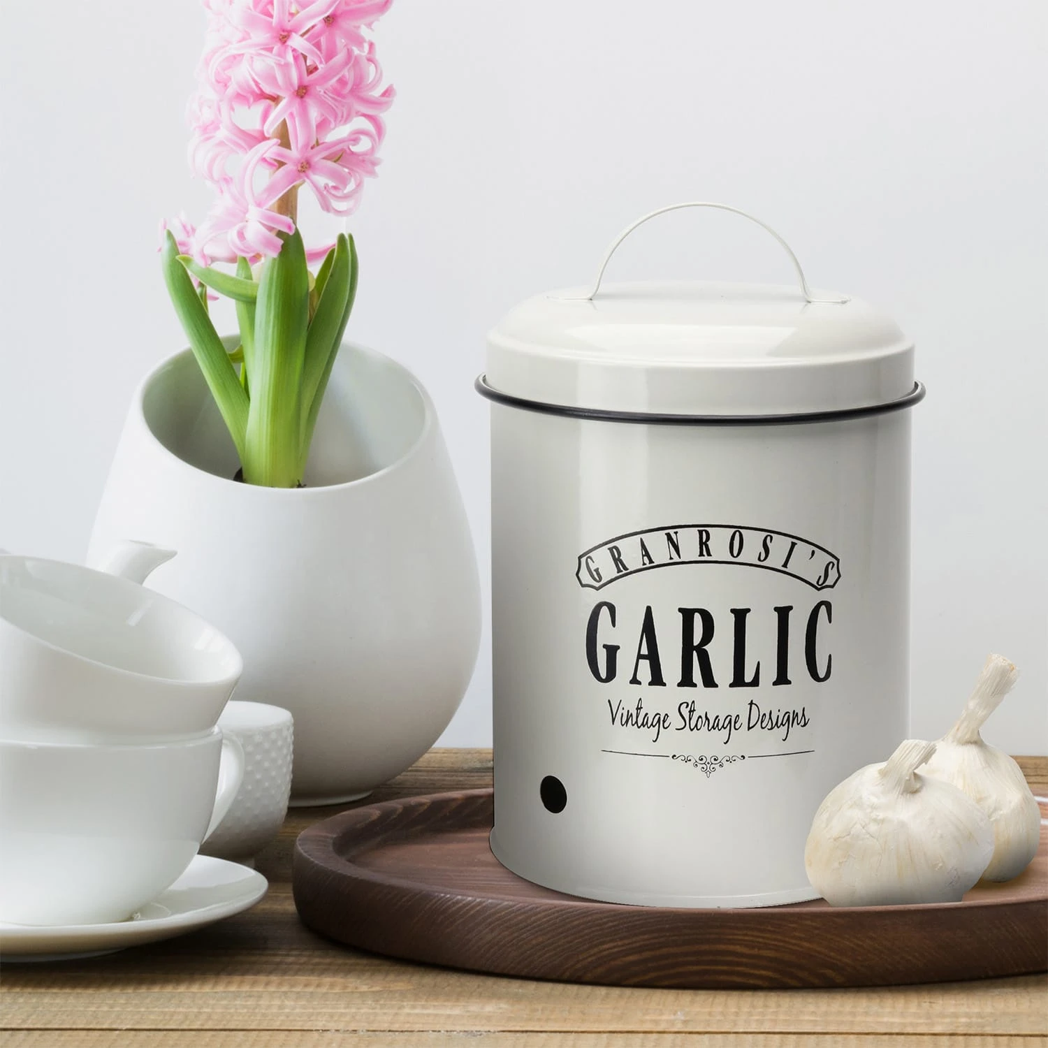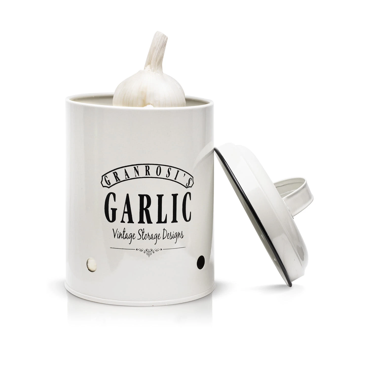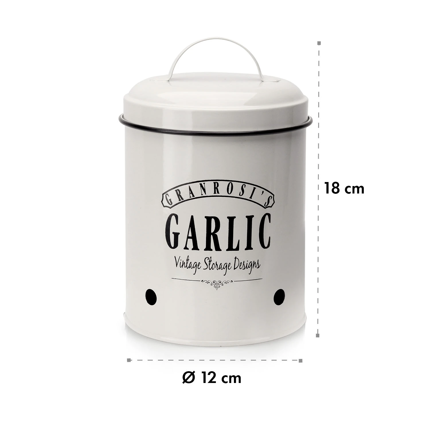Il barattolo porta aglio smaltato e salvaspazio Montana di Klarstein dal design vintage degli anni ’40 recante la scritta “GARLIC” non è soltanto resistente e abbastanza spazioso da conservare ca. 1,2 kg d’aglio, ma cattura anche l’attenzione in qualsiasi cucina. Ci si dimentica spesso che l’aglio dura più a lungo se viene conservato al buio e con una lieve circolazione d’aria. Grazie ai piccoli fori di ventilazione nel barattolo porta aglio, si evita la formazione di germi e gli spicchi d’aglio restano freschi più a lungo! E’ possibile utilizzare il barattolo anche per conservare altre verdure e lo si pulisce velocemente e facilmente con un panno umido. Con un diametro di 12 cm e un’altezza di 18 cm il barattolo porta aglio dallo stile rustico si adatta perfettamente alla tua credenza, cucina oppure al tuo pensile. Il metallo inossidabile smaltato è molto resistente e, a differenza dei contenitori di ceramica o porcellana, non si rompe se cade.