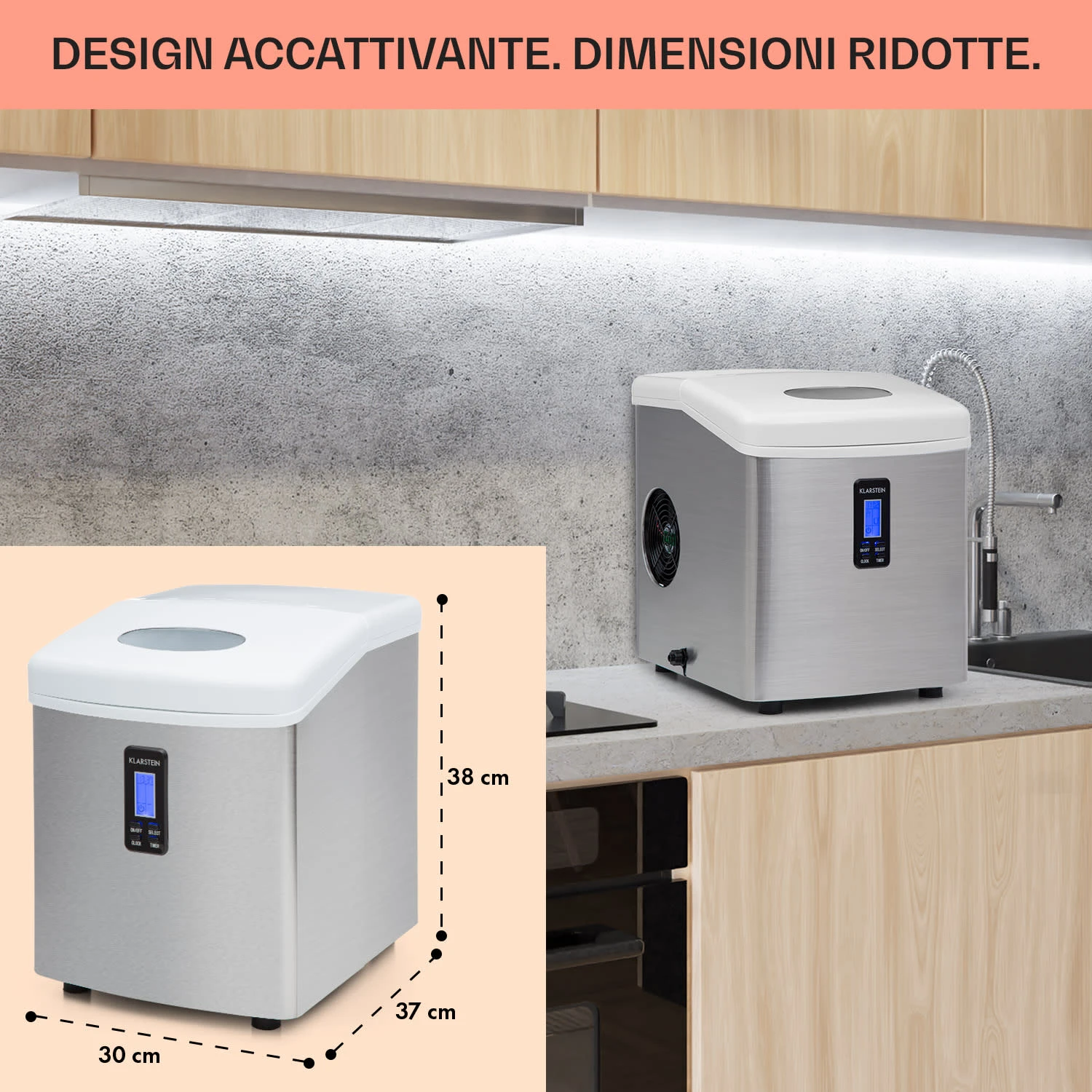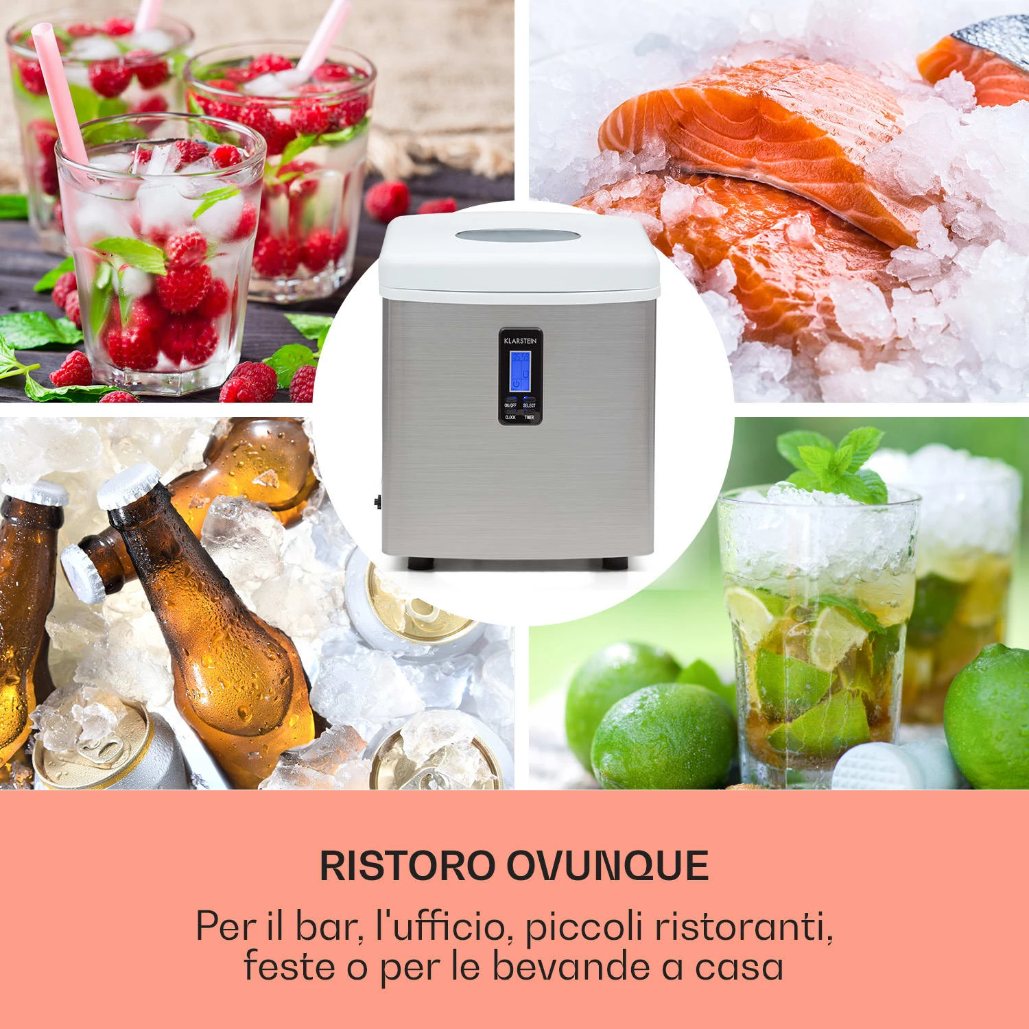 Il Klarstein Mr. Silver-Frost è una macchina per i cubetti di ghiaccio capace, in caso di bisogno, di mettere in funzione silenziosamente le sue “mani ghiacciate”.
