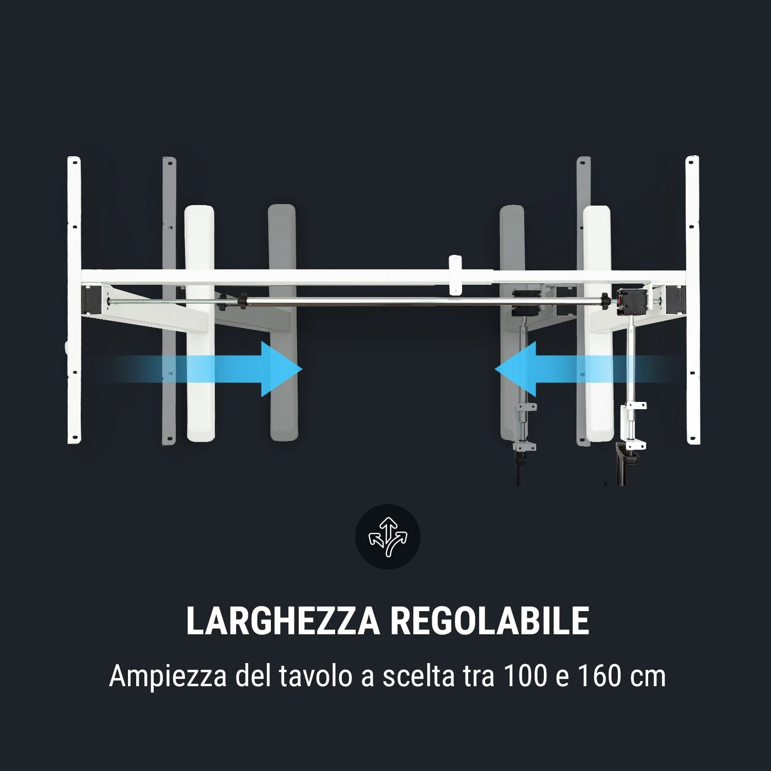Come se ciò non bastasse, è possibile regolare la larghezza del tavolo della scrivania Multidesk regolabile in altezza di oneConcept. Basta selezionare comodamente la larghezza tra 100 e 160 cm e niente paura: la struttura del tavolo ultra stabile supporta qualsiasi peso fino a 70 kg.