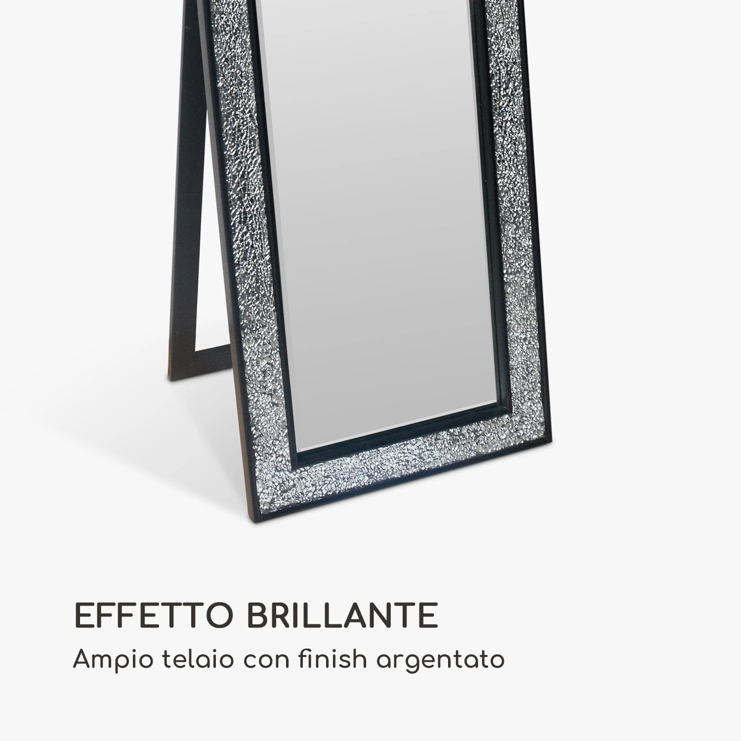 Cosa desiderare di più? L’affascinante specchio da terra Norwich di Casa Chic by blumfeldt conferisce stile e un tocco di lusso moderno alla tua casa. La sua cornice di legno larga 7 cm ha un design a mosaico. La finitura splitter circonda elegantemente la superficie rettangolare con sfaccettatura. Il design di lusso si armonizza perfettamente con gli stili di arredamento moderni e crea un effetto emozionante in soggiorno o in camera da letto. Naturalmente, il Norwich fa anche una bella figura in bagno o nell’ingresso.