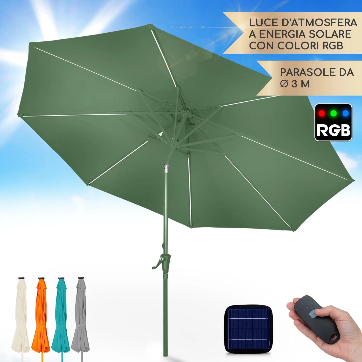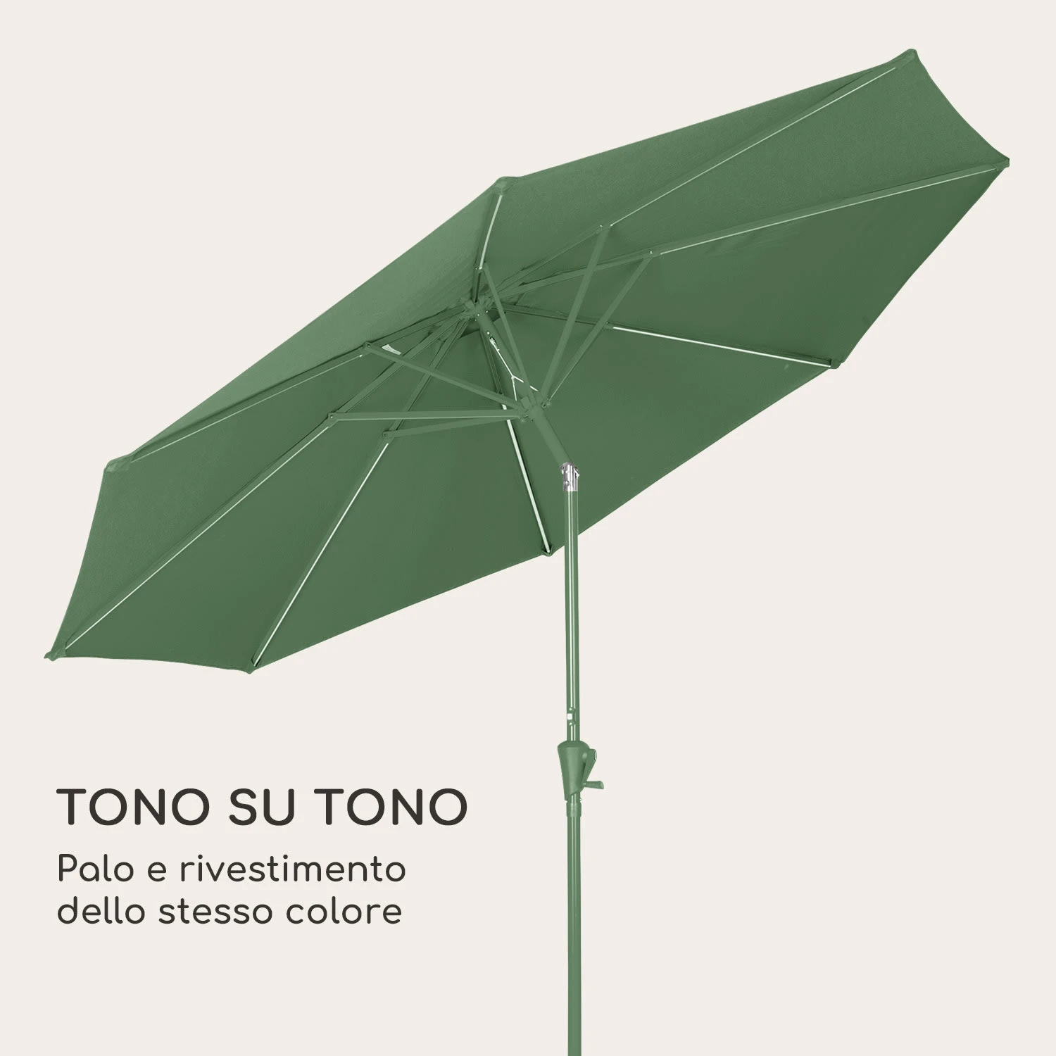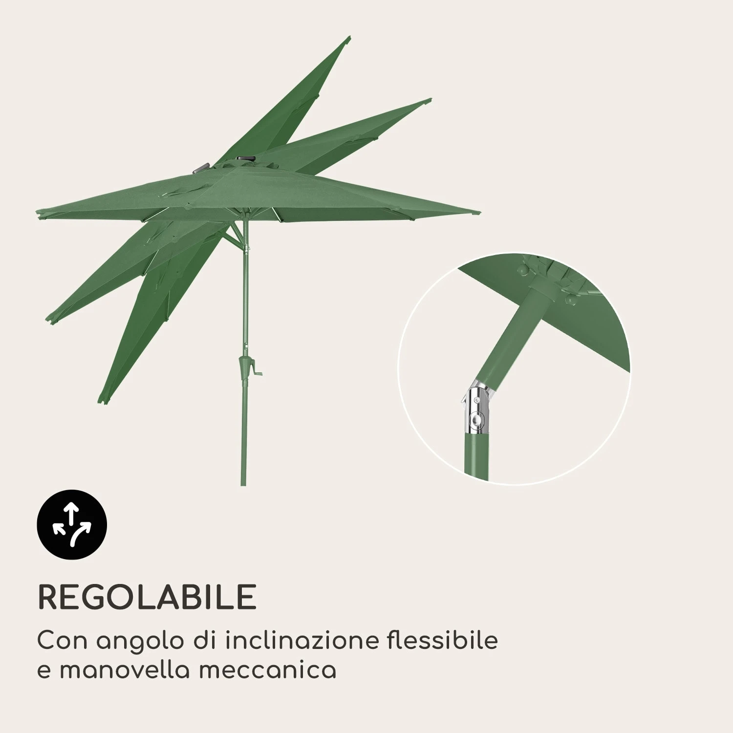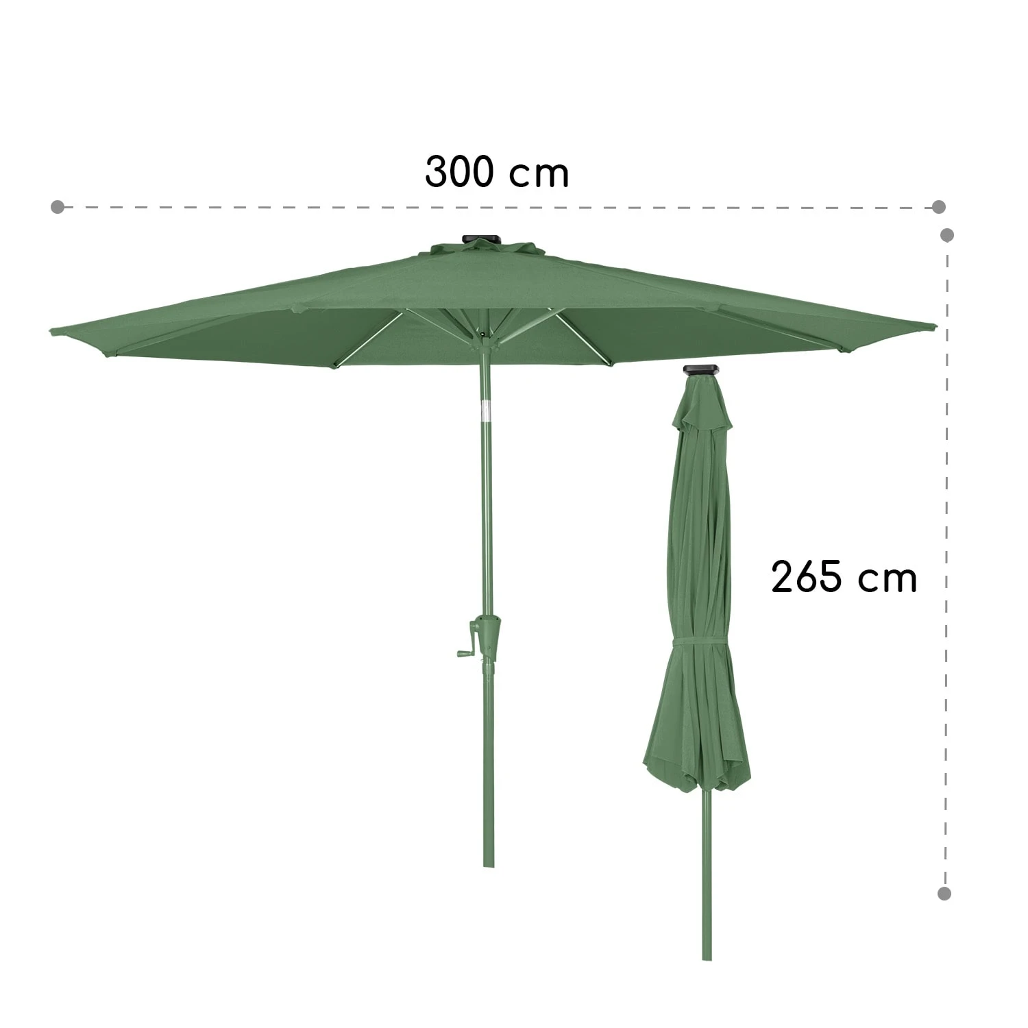 L’ombrellone Calais di blumfeldt offre una protezione ideale dal sole durante il giorno e diffonde una luce accogliente la sera. L’illuminazione integrata al LED funziona grazie a un pannello solare che si ricarica durante il giorno. In questo modo l’ombrellone non dipende da una fonte di alimentazione supplementare. Sotto questo grande ombrellone, regolabile in molti modi, sdraio, tavoli o sedie possono trovare un posto all’ombra. L’installazione, il serraggio e l’allineamento sono un gioco da ragazzi con il Calais. Per dispiegare la copertura, si può facilmente girare la manovella meccanica e regolare l’angolo di inclinazione con il pulsante.