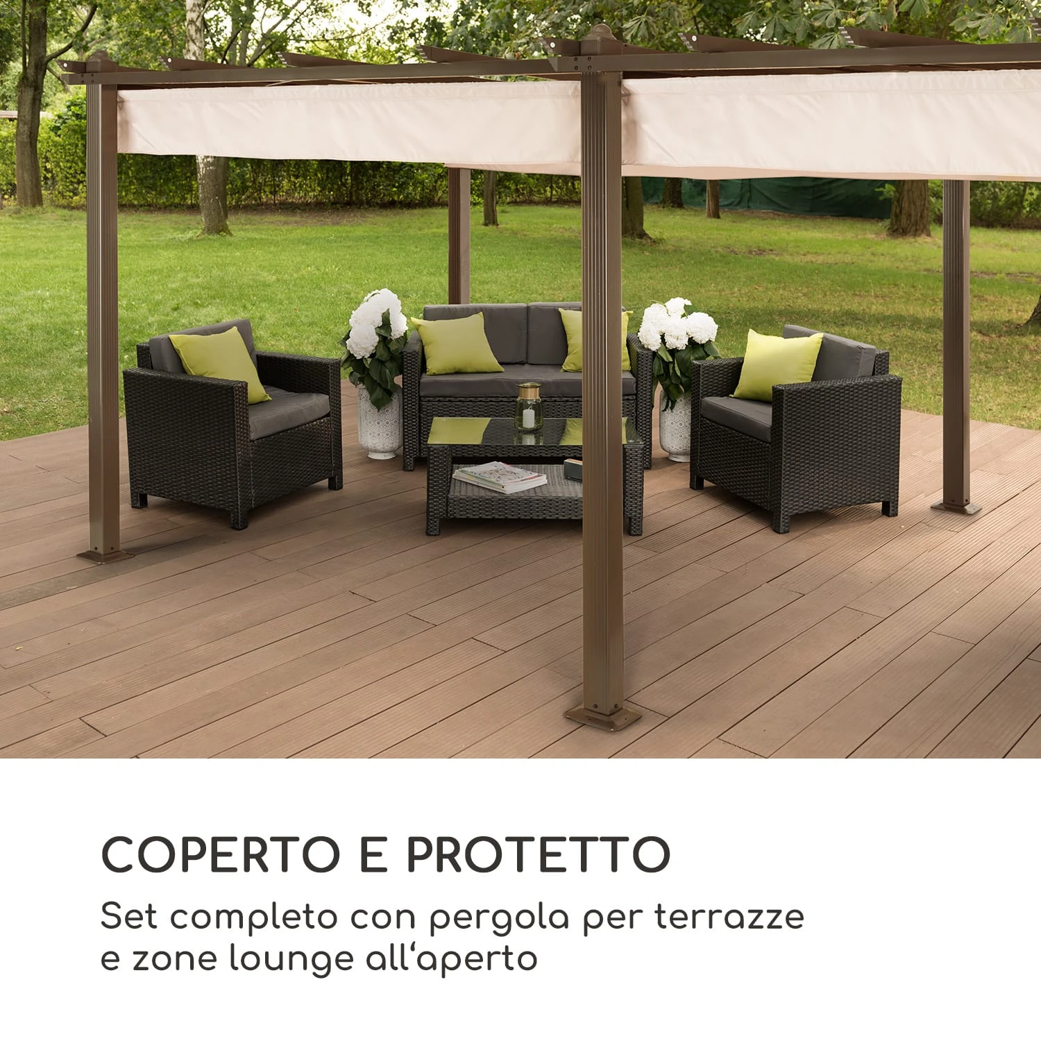 Godetevi un po’ di aria fresca in ogni condizione meteo con il gazebo Pantheon Rust di blumfeldt.