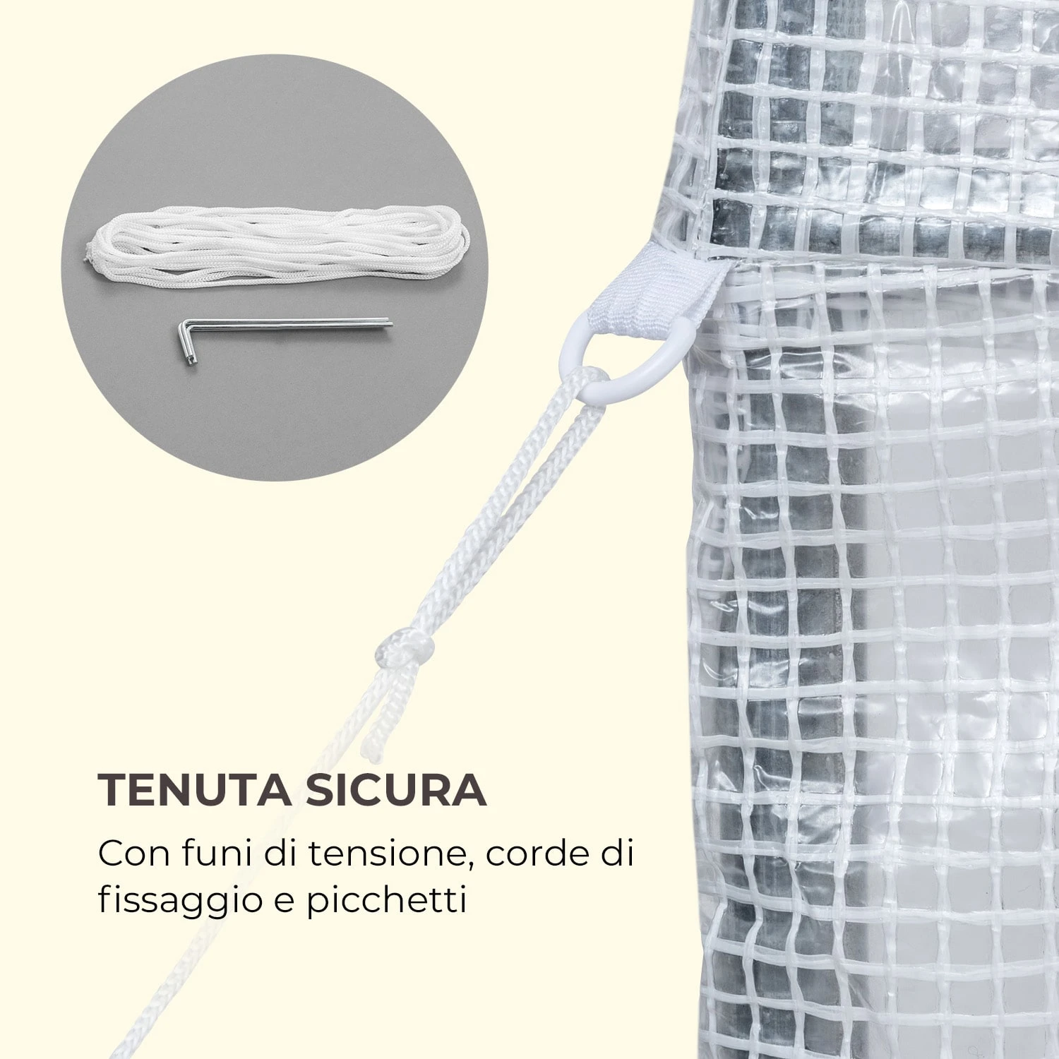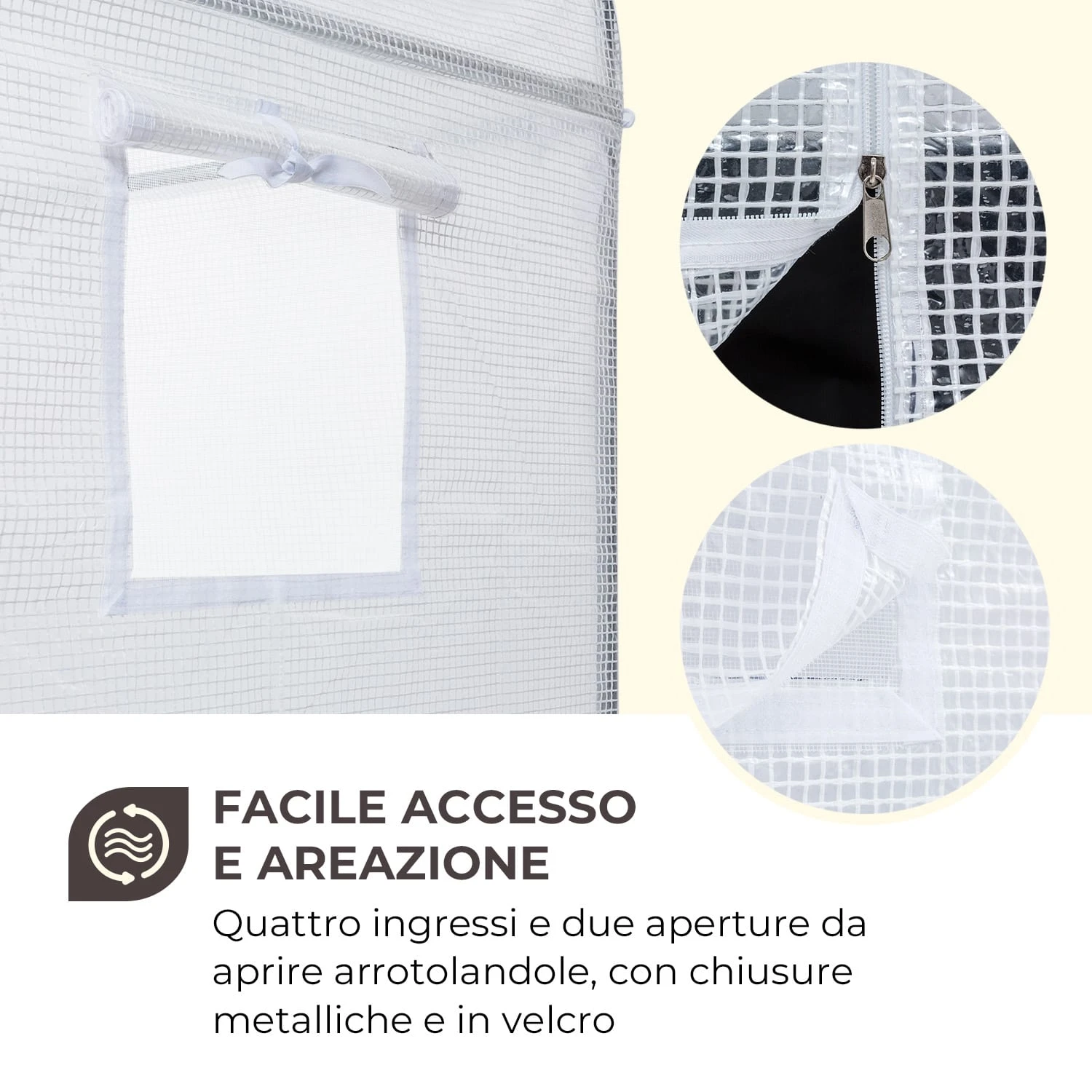 La pellicola per serra Plant Palace X2 di Waldbeck offre sia in estate che in inverno un posticino ideale per coltivare piante sensibili alle intemperie. La struttura stabile in tubo d’acciaio zincato da 25 mm si monta in un battibaleno e la pellicola con griglia in PVC resistente si tende. L’estrema robustezza contraddistingue la pellicola: antistrappo, trasparente e idrorepellente separa l’interno dall’esterno, creando un’sua atmosfera protettiva per le piante. Così anche pomodori e cetrioli prosperano in giardino durante il gelido inverno e in estate trovano riparo dalla pioggia. Per regolare la temperatura interna e facilitare l’accesso da ogni lato, la tenda per serra dispone di quattro porte e due finestre avvolgibili. Velcri e cerniere metalliche conferiscono stabilità e longevità. Per far sì che la pellicola per serra sfidi anche il vento forte senza subire spostamenti, viene fornita direttamente con picchetti e corde di ancoraggio per assicurare il fissaggio.