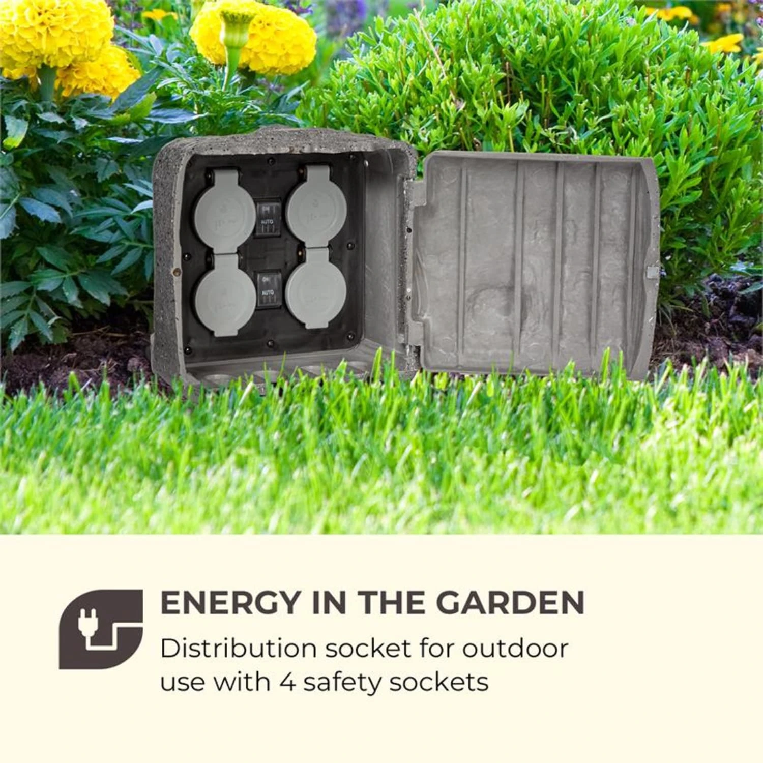 La presa elettrica da giardino Power Rock Twilight di Waldbeck nasconde ben 4 prese nel suo bellissimo alloggiamento in plastica ABS e garantisce una potenza totale fino a 3680 Watt. Ogni presa è tutelata al meglio da acqua e corpi estranei grazie alla classe di protezione IP44. Uno sportello con chiusura magnetica nasconde le prese all’interno della stazione di distribuzione. Power Rock Twilight diventa particolarmente utile quando scende la notte: un sensore crepuscolare integrato assicura che, in modalità automatica, vengano accese fino a due prese, in modo da attivare luci esterne, trappole fotografiche o impianti per tenere lontani gli animali. Quando il sole si alza al mattino, il sensore spegne automaticamente le luci.