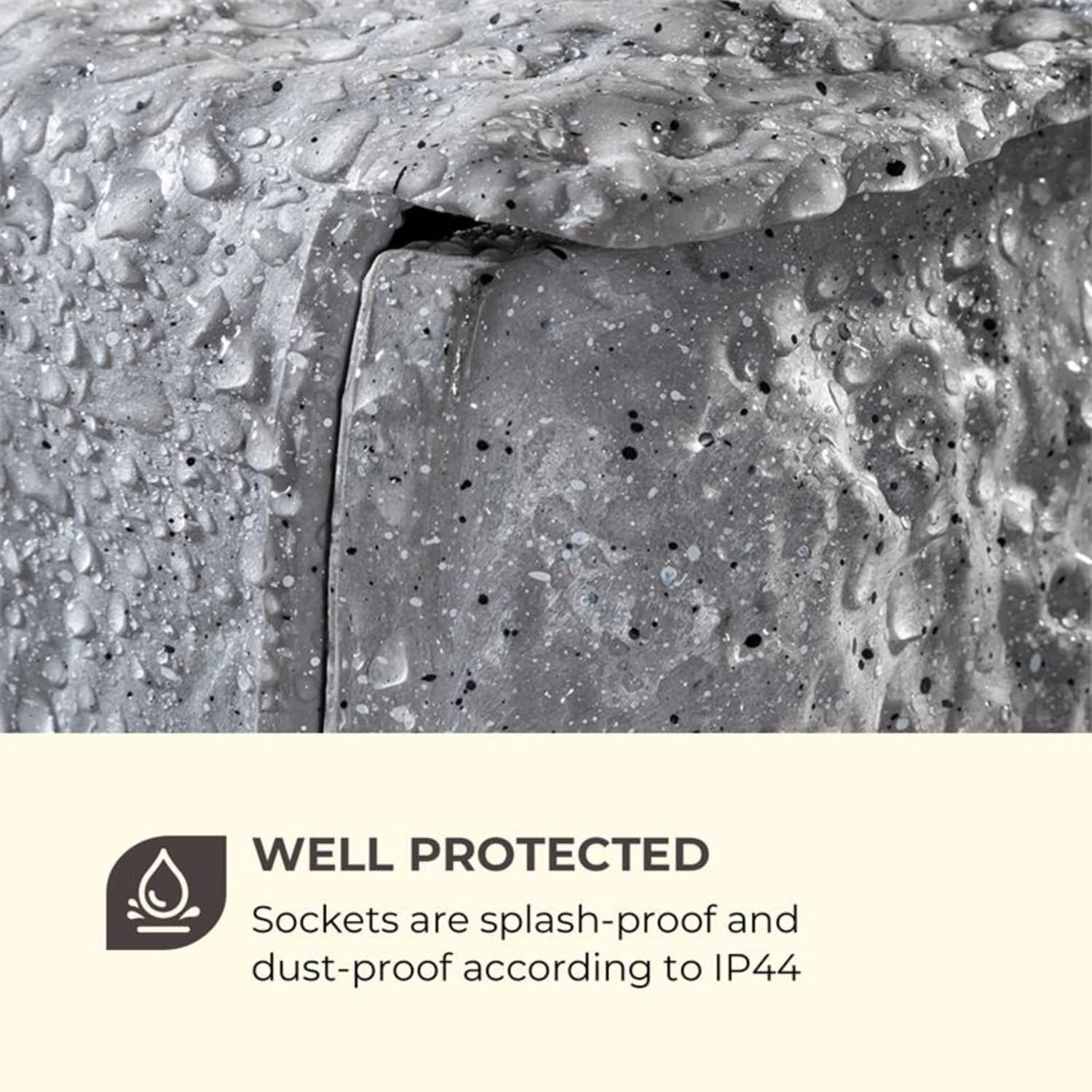 La presa elettrica da esterni Power Rock Twilight di Waldbeck è il modo più semplice e accattivante per avere sempre possibilità di collegamento alla rete elettrica in giardino o in cortile.