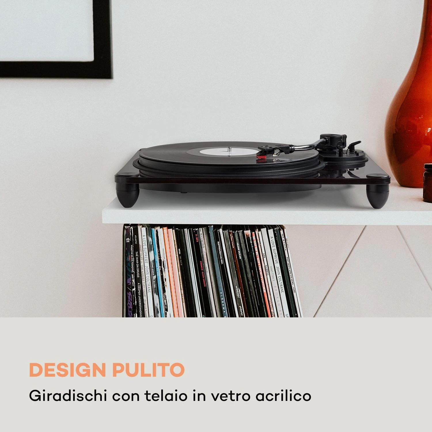 Dato che il giradischi Pureness possiede un preamplificatore integrato, è subito pronto per la riproduzione e risulta essere particolarmente interessante per gli appassionati della musica che desiderano un dispositivo semplice. Inoltre lo si può collegare a un impianto con il cavo RCA. Però il giradischi Pureness di auna non è soltanto un piacere per le orecchie: la sobria eleganza dello chassis in vetro acrilico è una gioia per gli occhi ed è il pezzo forte in soggiorno.