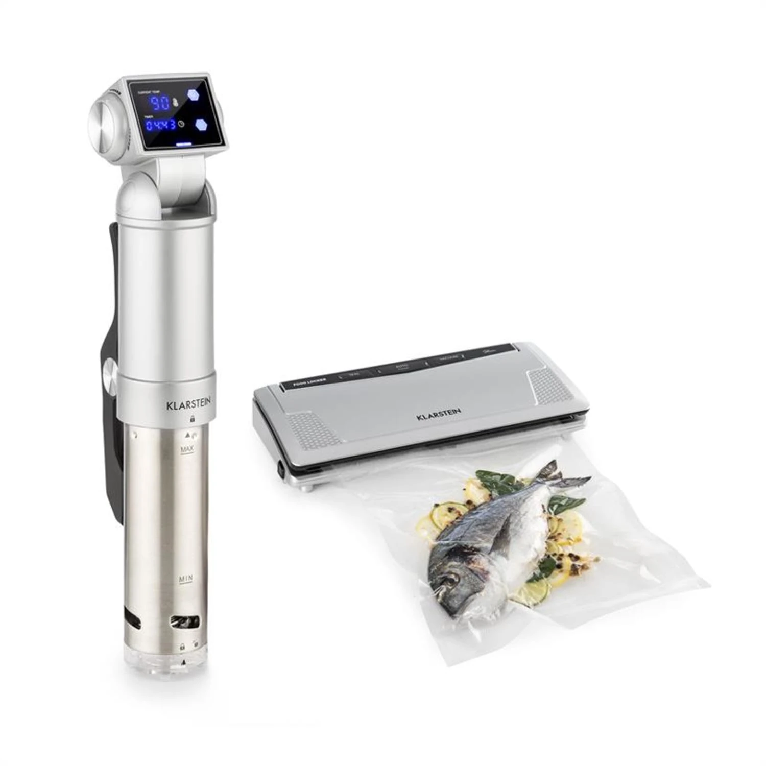 Tutto è pronto per la cucina gourmet: con il nostro Quickstick Pro Foodlocker Silver Set di Klarstein anche il sous-vide fa ingresso nella tua cucina nel set completo!