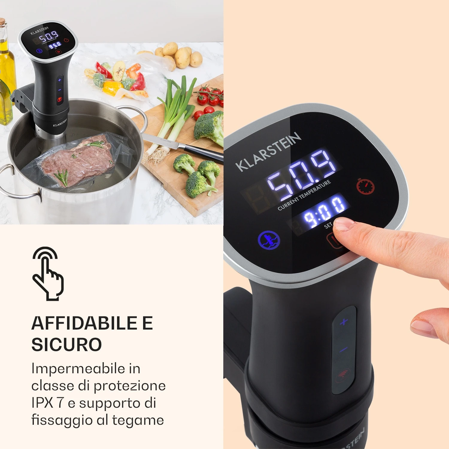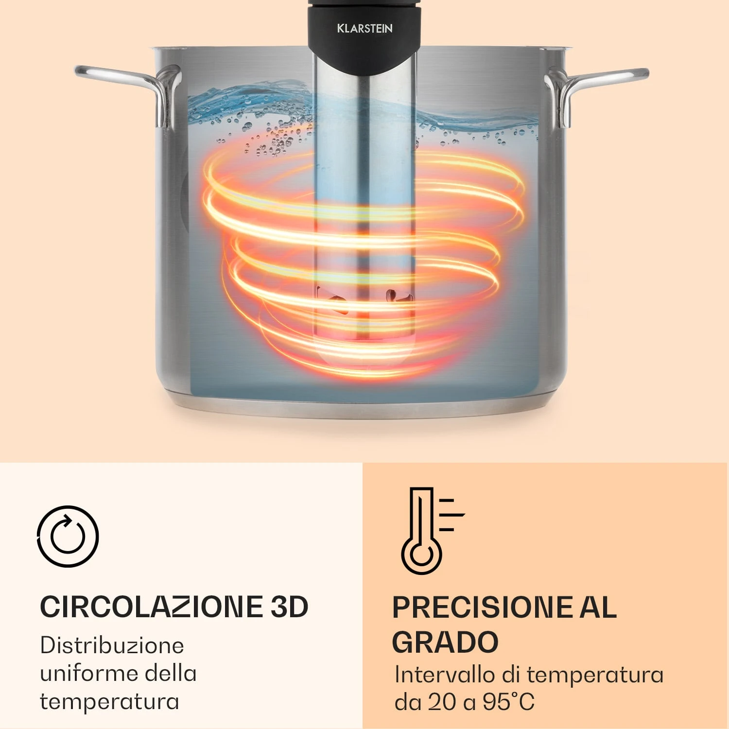 Per gourmet smart e tutti coloro che desiderano alimentarsi in modo salutare, senza perdersi i sapori autentici degli ingredienti: il circolatore per sous vide Quickstick Smart di Klarstein.