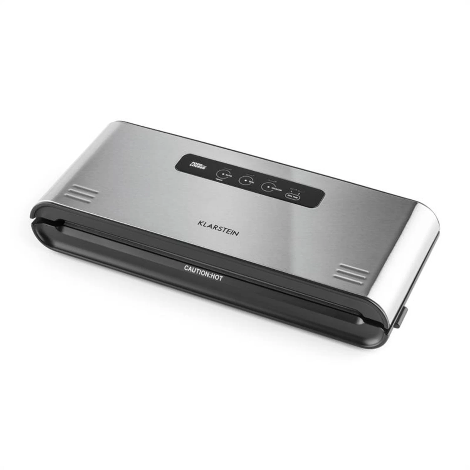 Per imparare velocemente tutti i benefici della cucina sottovuoto, il set Quickstick per cottura sous vide di Klarstein contiene anche la macchina sottovuoto Foodlocker Pro. Sottile, compatta e potente: la Foodlocker Slim è salvaspazio e ha una potenza di soli 120 Watt. Con una potenza di aspirazione pari a -0,8 bar e una velocità di aspirazione pari a 12 l/min è possibile mettere sottovuoto e sigillare automaticamente i sacchetti, spingendo un solo bottone. Alimenti delicati, come frutta, liquidi e spezie, vengono sigillati utilizzando il tasto Pulse, per evitare che vengano schiacciati.