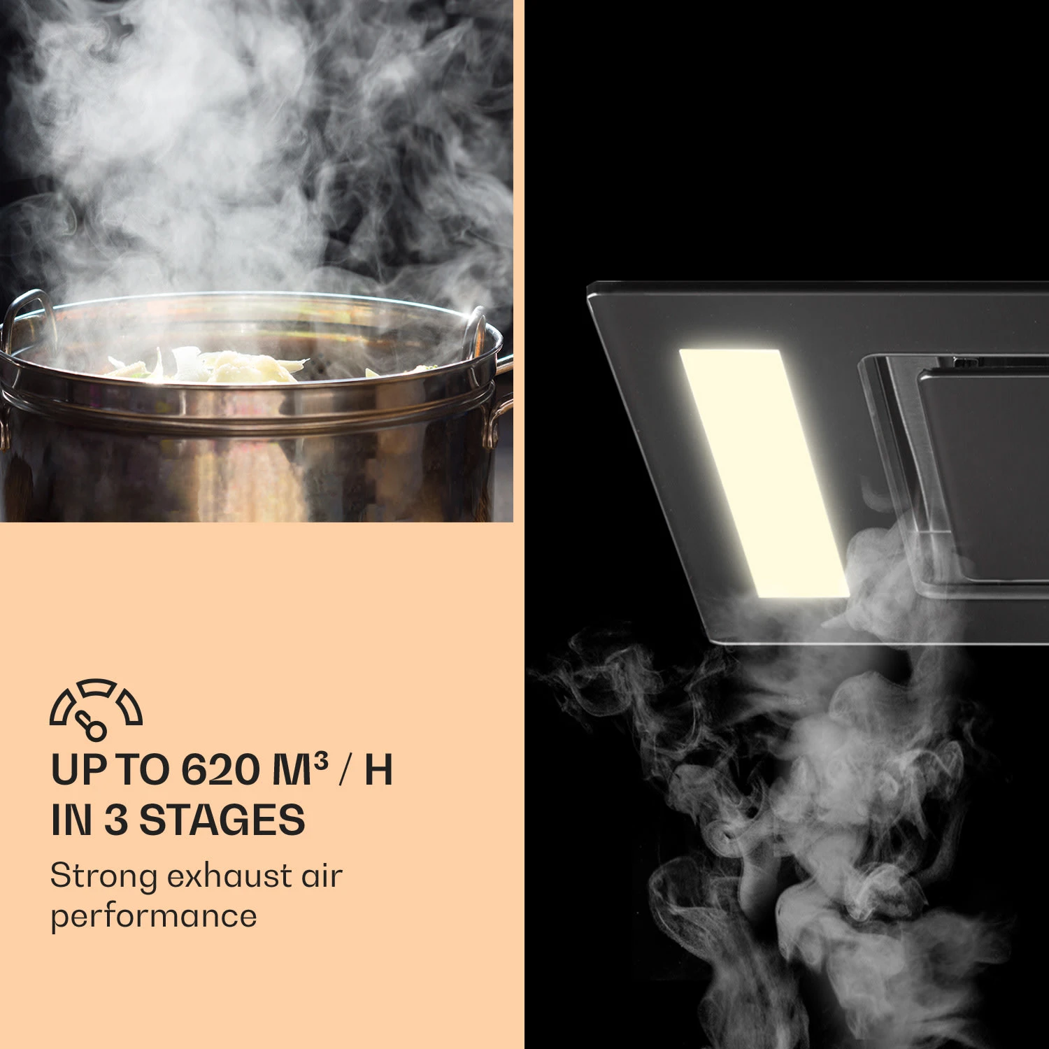 Quando gli odori del cibo si diffondono in cucina, la bellissima cappa aspirante Remy di Klarstein è sempre pronta a offrire il suo supporto. Con 230 watt di potenza, 3 velocità e fino a 619 m³/h di capacità aspirante elimina con efficacia vapori e fumo. Flessibile: può essere utilizzata come cappa a soffitto sopra un’isola di cottura o come cappa a incasso e sottopensile. Lo schermo touch e il telecomando assicurano la massima praticità di controllo, mentre la luce LED integrata attivabile permette di avere sempre un’ottima visibilità sui fornelli. Inoltre, può essere modificata per la funzione di ricircolo con filtri ai carboni attivi aggiuntivi.