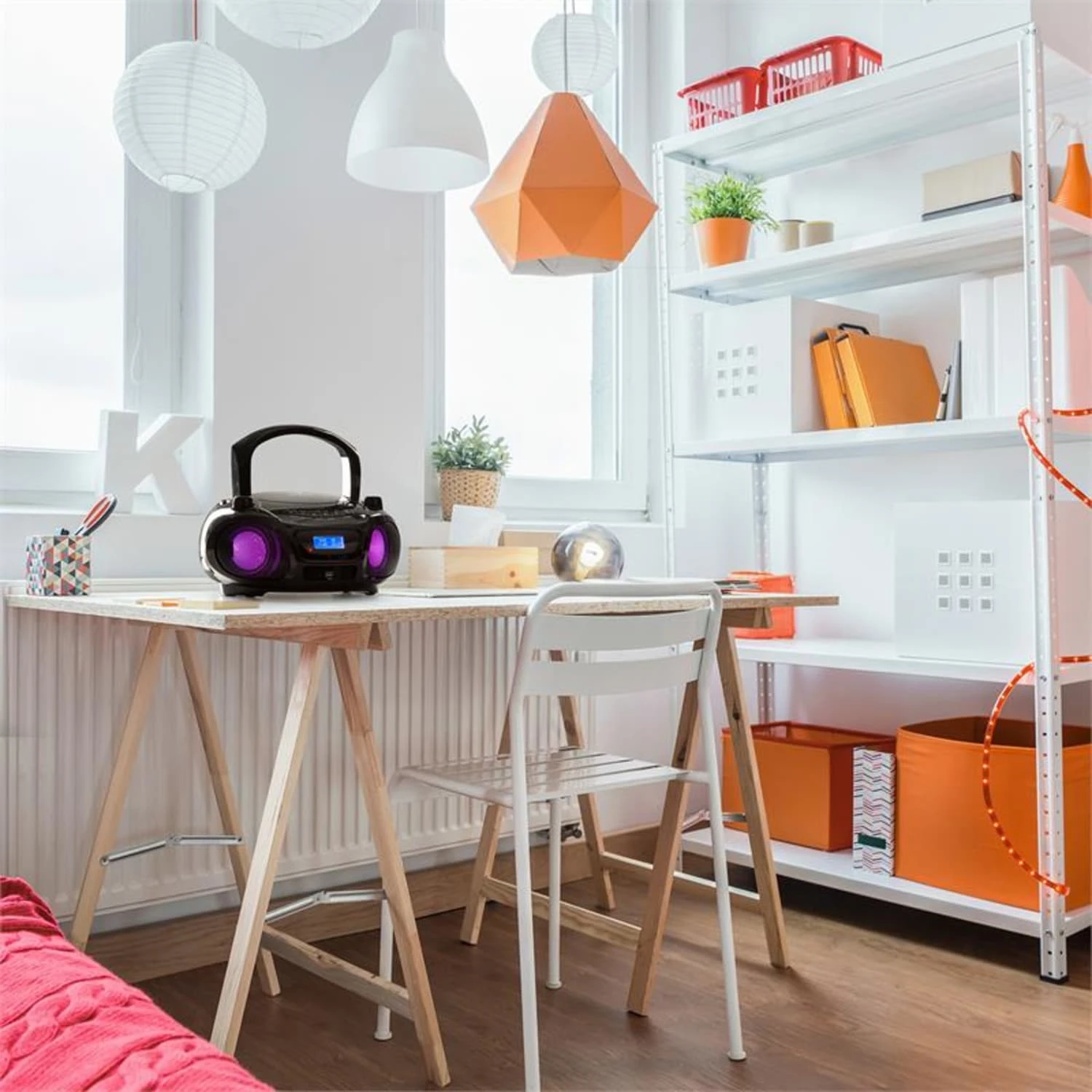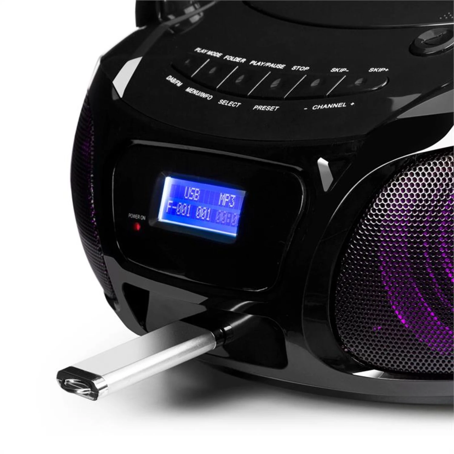 Straordinario e versatile! Il sistema Compact DAB Roadie di auna convince non solo per l’affascinante gioco cromatico LED, ma realizza praticamente tutti i desideri connessi alla possibilità di riproduzione di diversi formati.