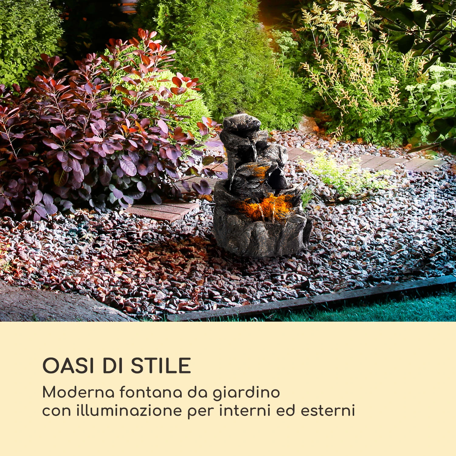 La fontana da giardino Rocky Waters è decorativa grazie ai rilassanti giochi di luce e d’acqua e fa da ornamento in ogni giardino o abitazione.