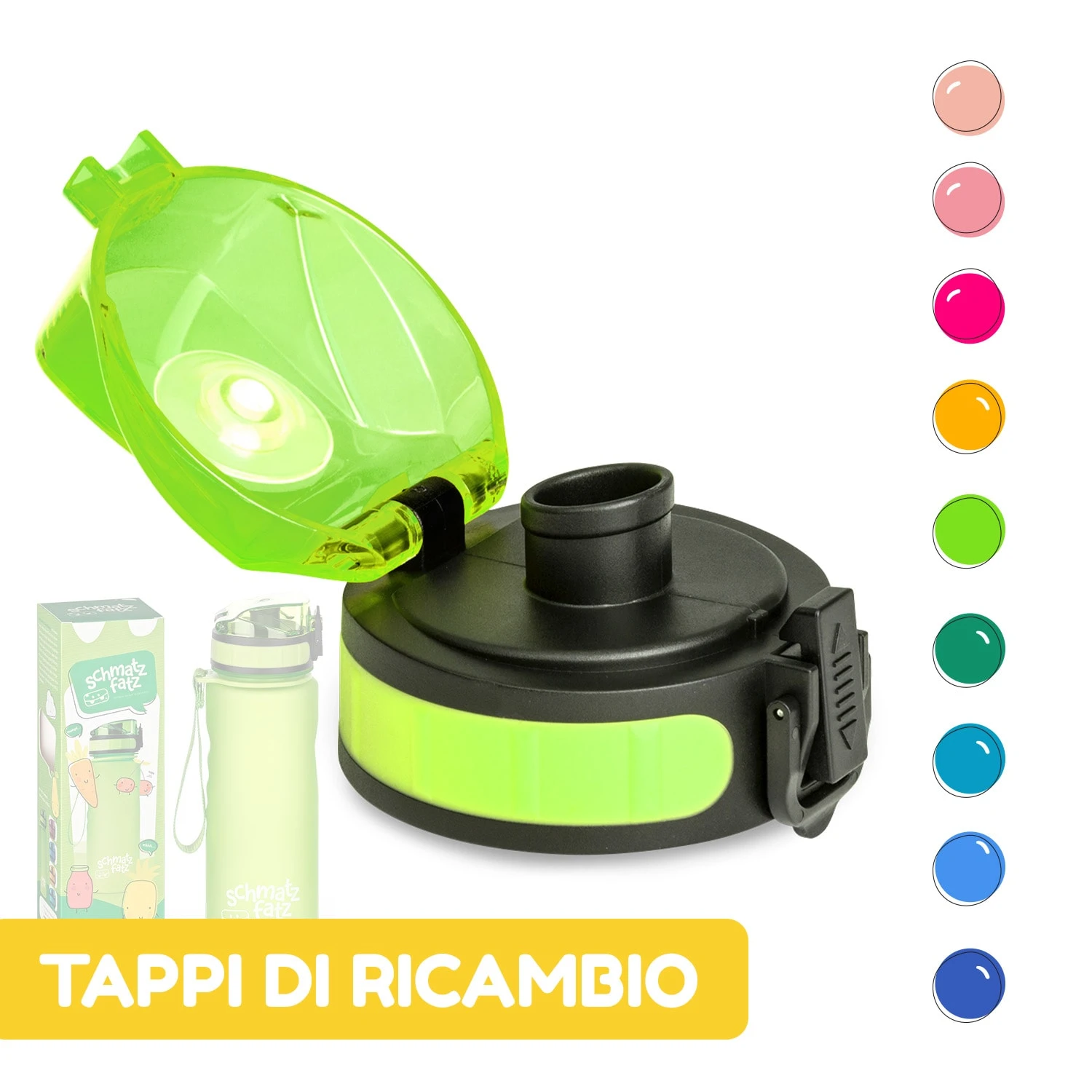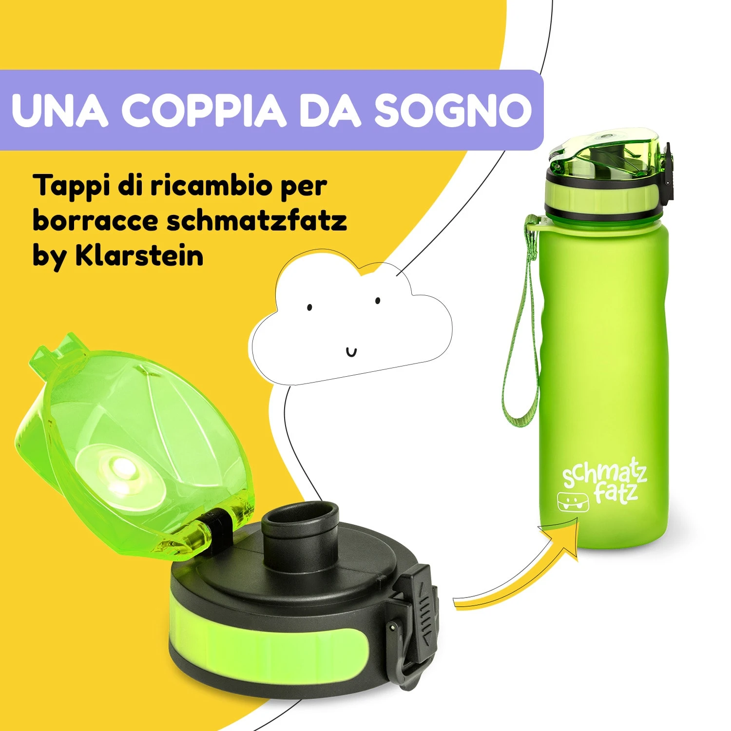 Il coperchio di ricambio schmatzfatz è un accessorio ecologico adatto per le borracce schmatzfatz da 350 ml o 500 ml. Grazie alla realizzazione in plastica senza BPA, la tua bibita resta sana mantenendo tutto il suo sapore. Per allungare la durata del coperchio, consigliamo di lavarlo a mano.