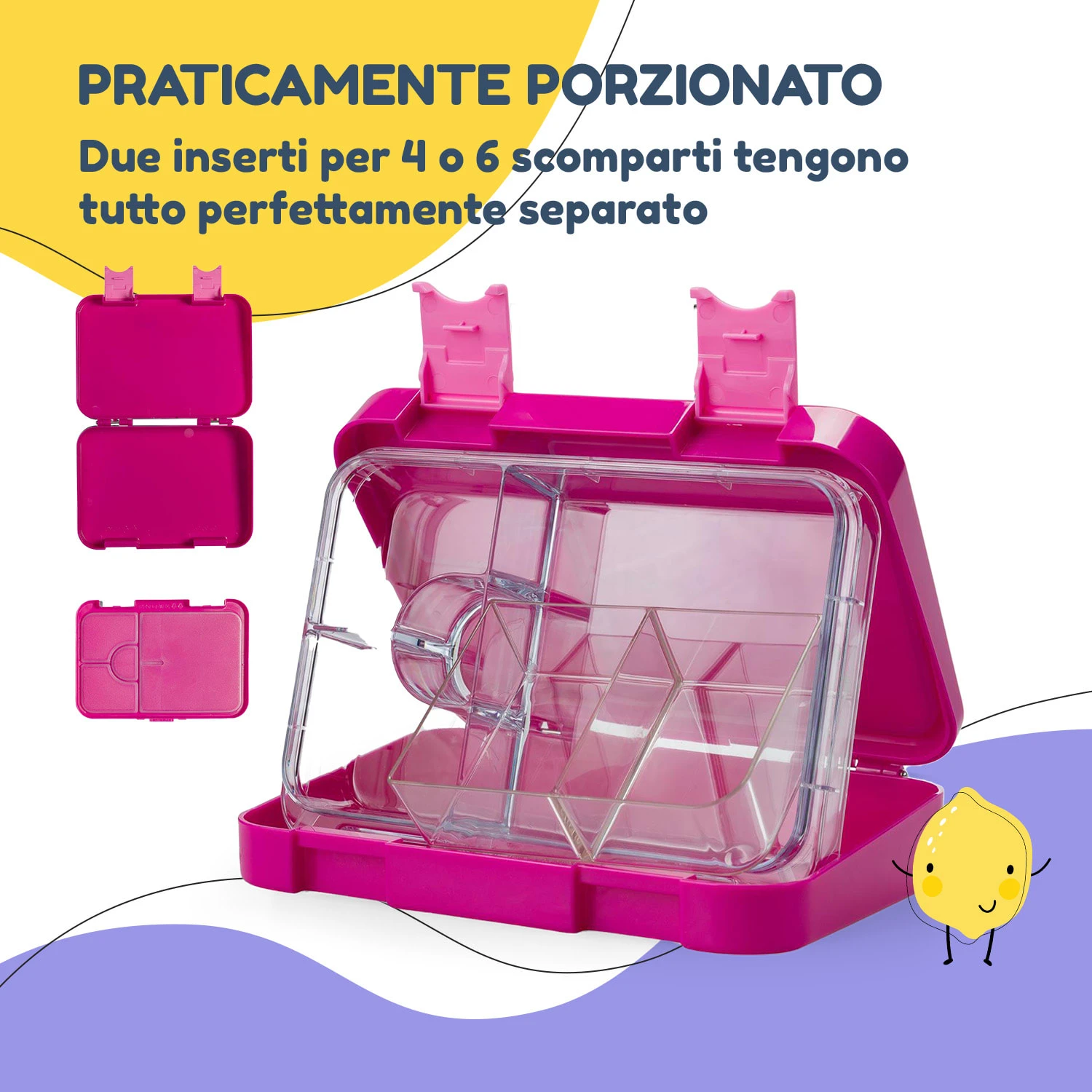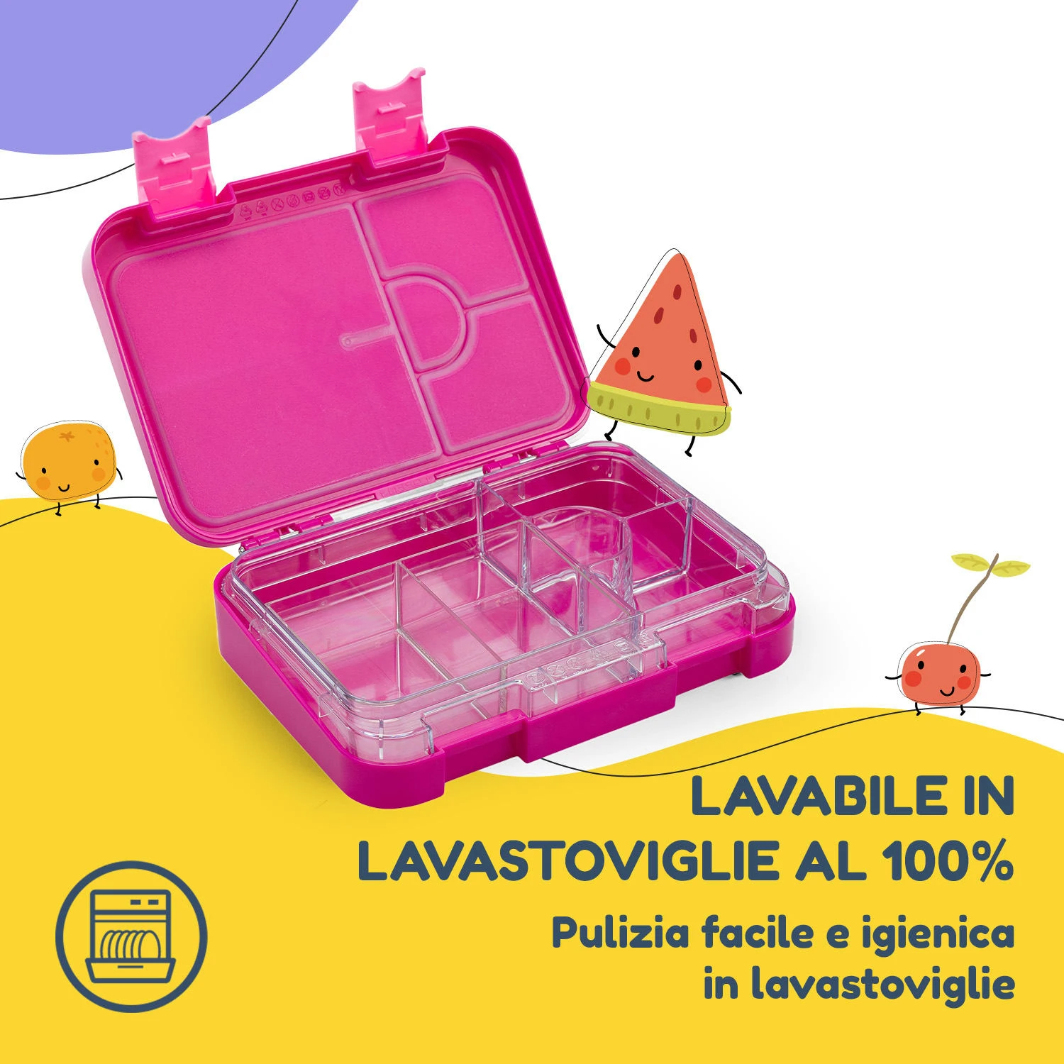 Pratica e versatile nella quotidianità dei bambini, comoda alla sera: grazie al raffinato sistema a innesto con scomparti rimovibili, la lunchbox può essere pulita alla perfezione. L’igiene è assicurata dalla possibilità di lavare senza problemi in lavastoviglie gli scomparti interni. Dato che il contenitore esterno non entra in contatto con gli alimenti, può essere pulito semplicemente con un panno umido. Grazie all’efficace chiusura ermetica, potrete tranquillamente preparare la lunchbox anche la sera prima.