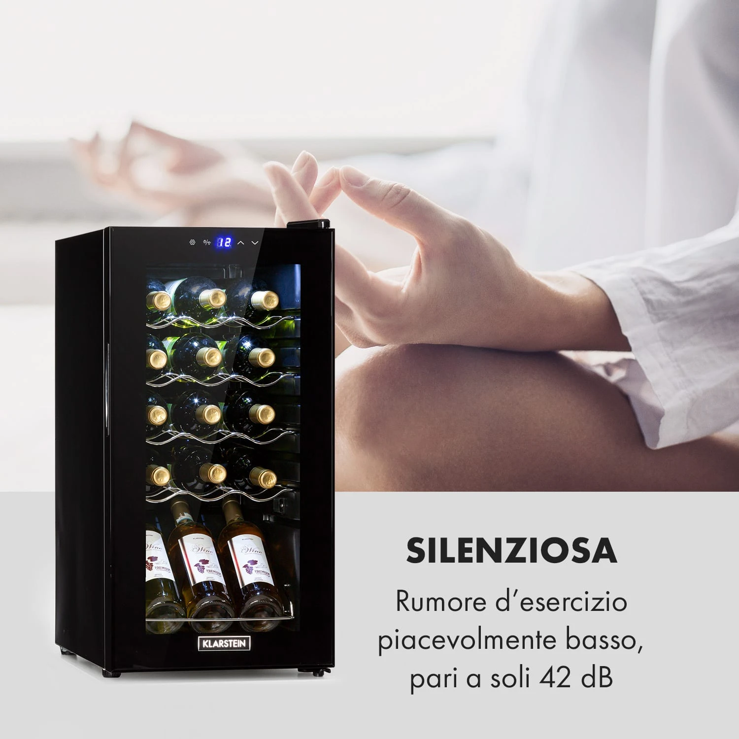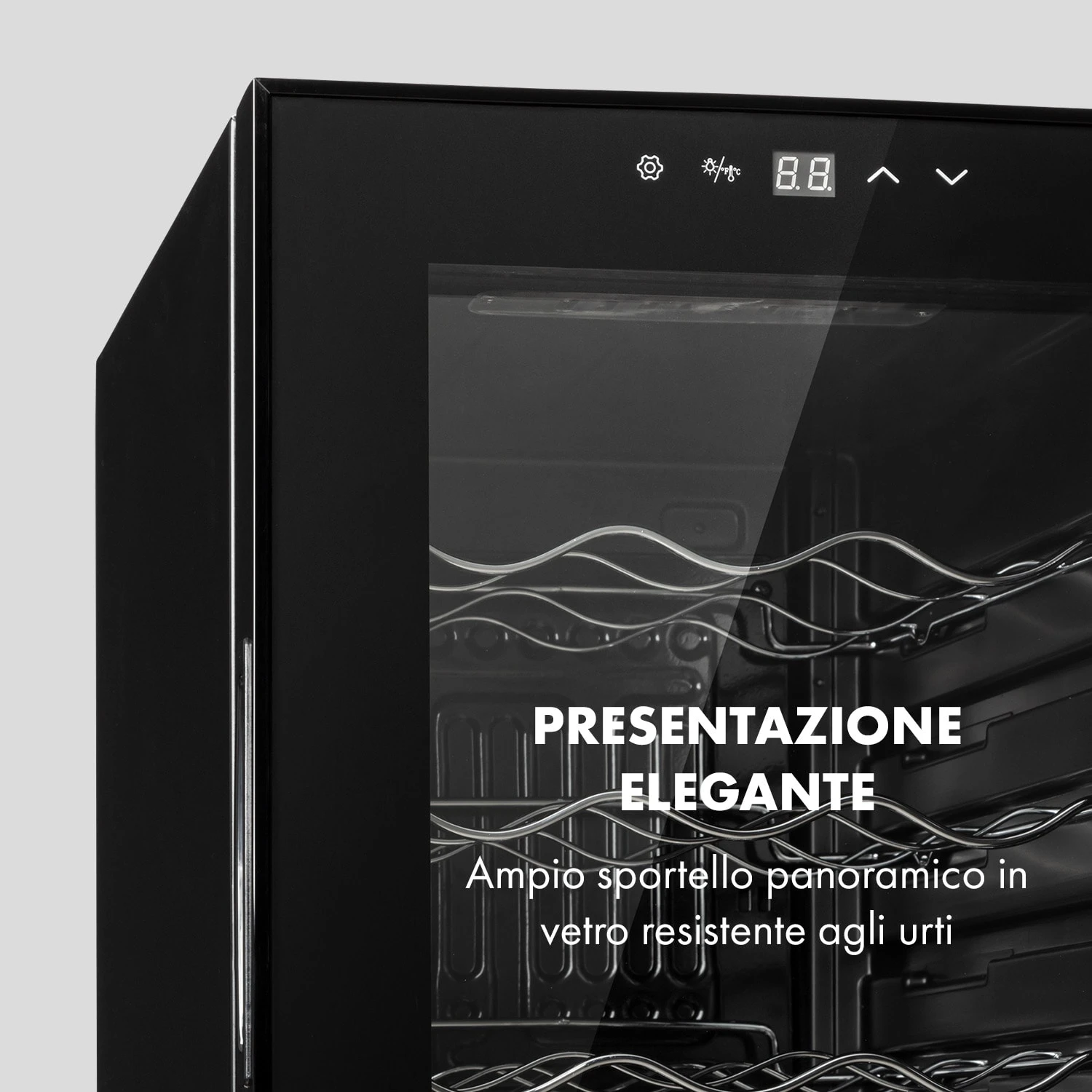 Per amor del vino: il frigorifero per vini Shiraz 15 Slim Uno di Klarstein assicura degustazioni impeccabili delle tue bottiglie a temperature perfette. Colpisce con il suo design sottile e si integra alla perfezione anche in piccoli spazi. Offre le migliori condizioni per conservare vini pregiati in modo affidabile a temperature tra 5 e 18 °C. Grazie allo sportello frontale in vetro di sicurezza, la cantinetta frigo permette una raffinata presentazione delle tue bottiglie di vino.