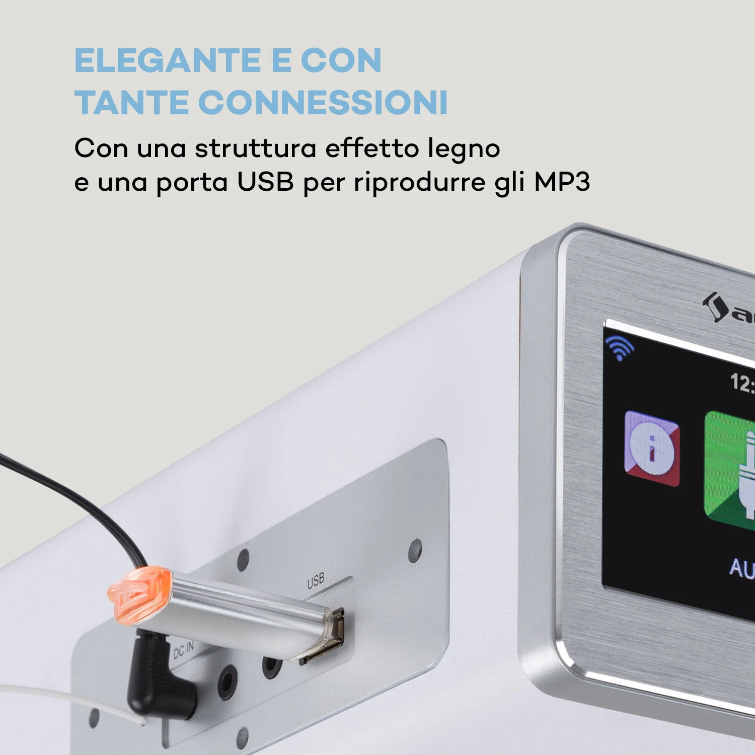 La radio da cucina Silver Star Chef di auna unisce tecnologia ultramoderna con un elegante design salvaspazio.