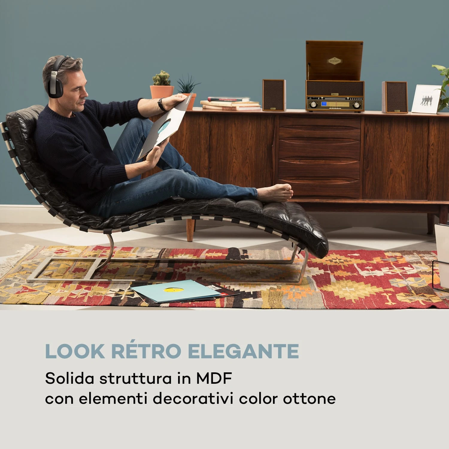 Oltre all’ampio mobile in solido MDF, gli elementi decorativi color ottone sottolineano il look nostalgico e fanno dell’impianto stereo vintage Belle Epoque 1910 di auna un cattura-sguardi in ogni soggiorno.