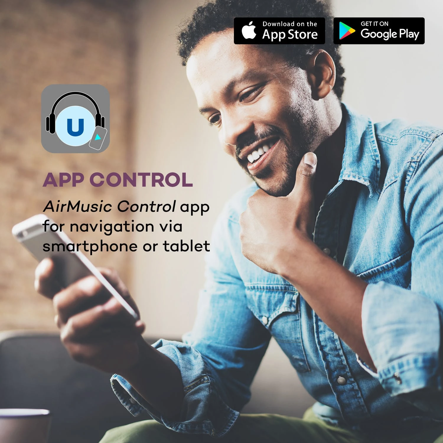 La funzione bluetooth incorporata consente la riproduzione wireless di innumerevoli Smart Devices come tablet e smartphone. Grazie alla possibilità di accoppiamento facilitata, i dispositivi compatibili sono subito collegati e riproducono sui Devices la musica già presente o scaricata in streaming. E’ possibile collegare all’ingresso Line e AUX svariati dispositivi audio esterni come ad esempio lettori CD oppure Camcorder. Per le altre fonti è disponibile una porta USB. Il controllo avviene comodamente tramite l’app AirMusic Control oppure il telecomando, con i quali puoi alternare i dispositivi collegati e passare dalla TV alla musica. Grazie al suo aspetto sobrio e prezioso, la soundbase Stealth Base Connect di auna si inserisce in qualsiasi ambiente.