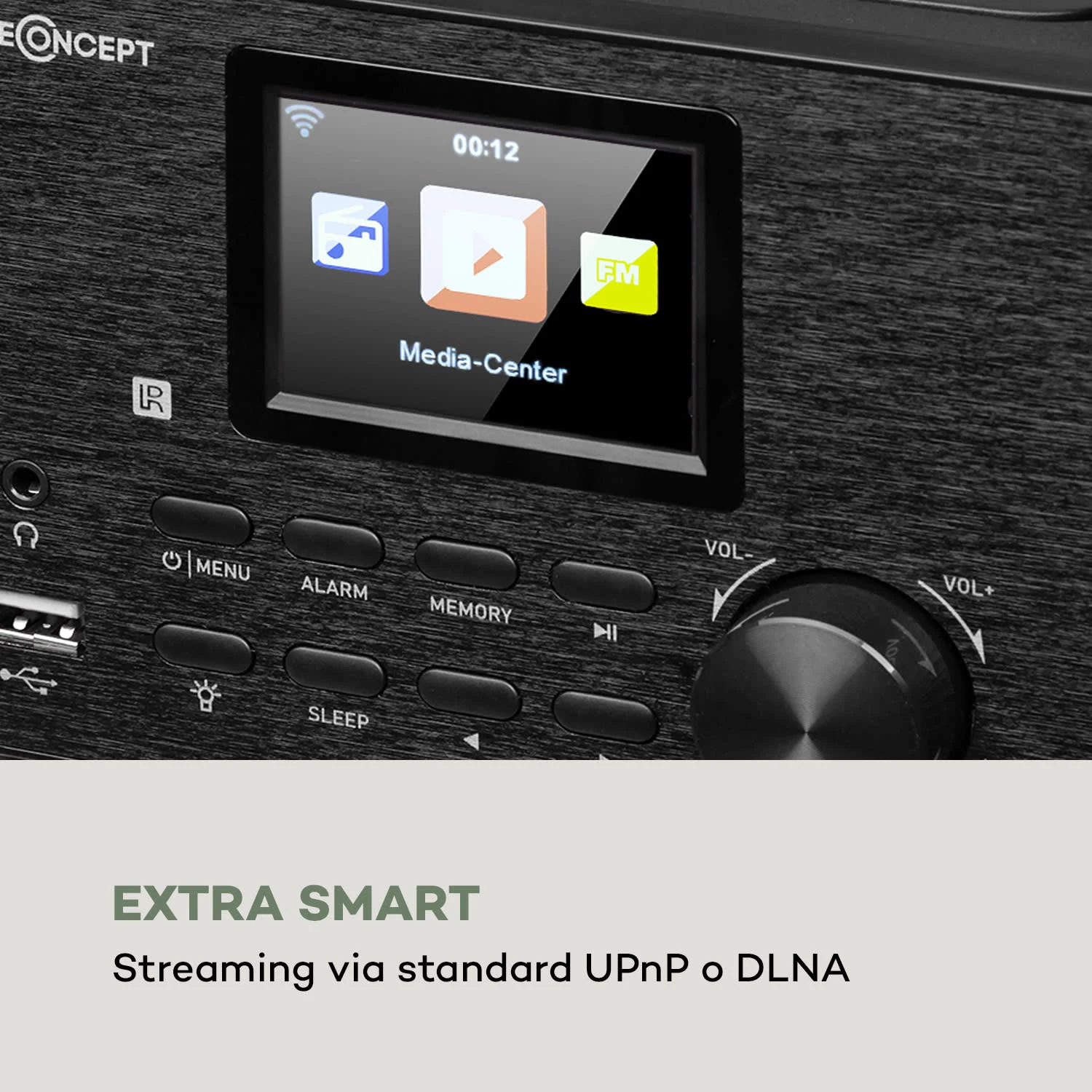 Streamo di oneConcept è un impianto stereo con web radio focalizzato sul mondo dei media moderni e che convince con le sue numerose possibilità di riproduzione e il suo potentissimo sound!