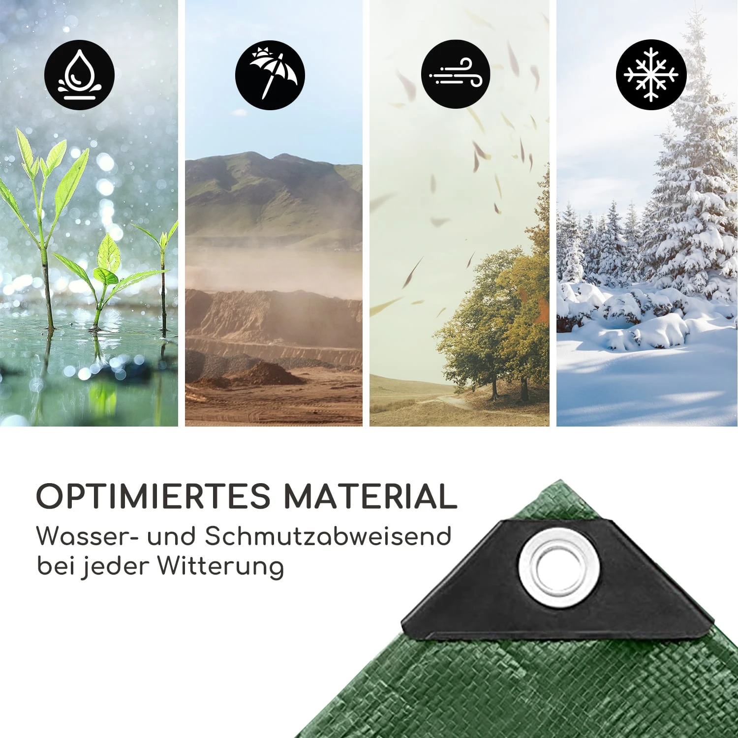 Un tuttofare per aree esterne: il telone in tessuto blumfeldt Aegis in robusto tessuto sintetico può essere utilizzato ovunque sia necessario. Sia per il giardinaggio, come copertura per legna da ardere, mobili da giardino, moto e sabbiere o per il campeggio come telo base impermeabile per tenda. Gli angoli rinforzati e la breve distanza tra i fori assicurano un’alta capacità di carico. Il materiale resistente è repellente allo sporco, resistente alle intemperie e protegge anche dai raggi del sole. Con il cordino di fissaggio in dotazione, sei pronto a qualsiasi tipo di utilizzo.