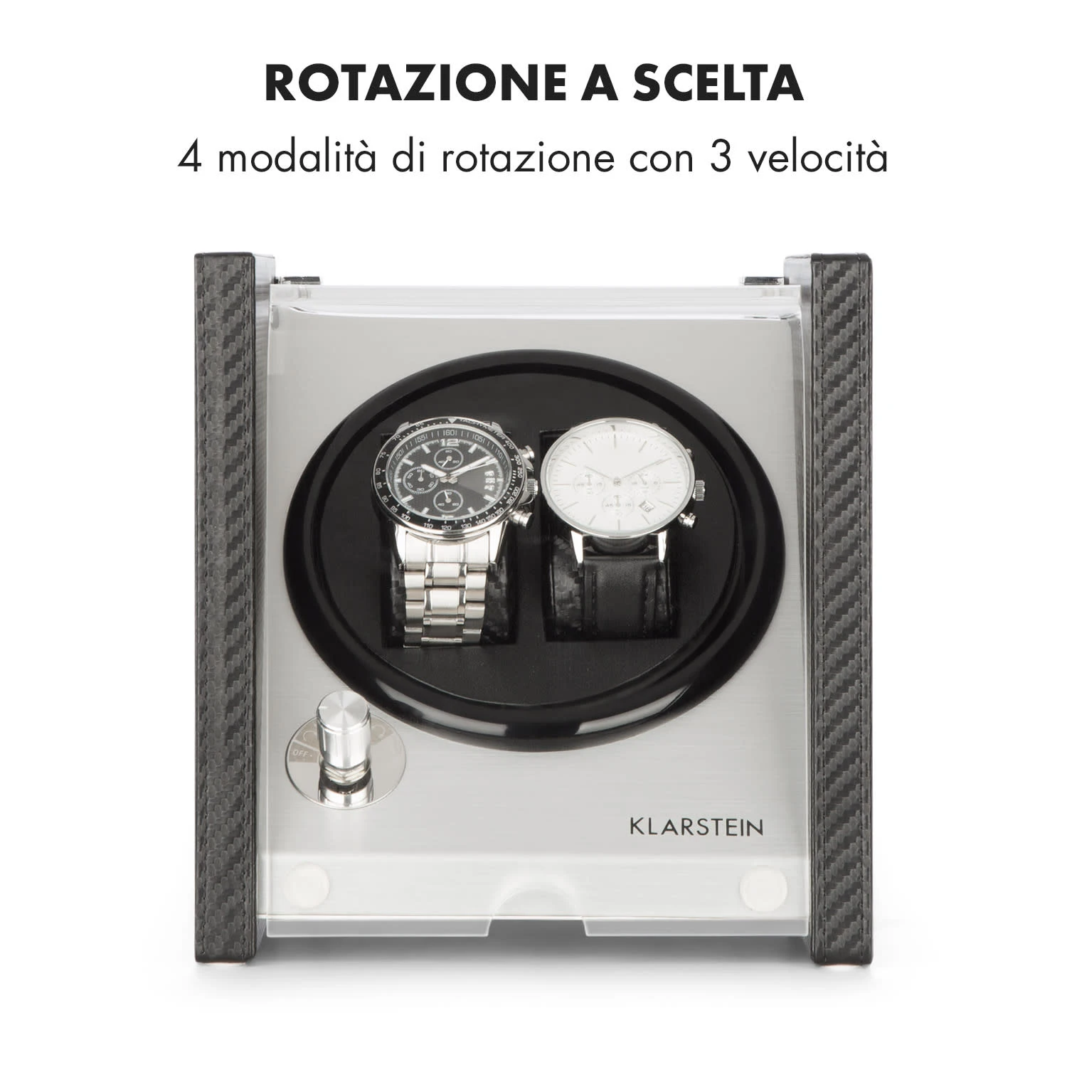 Gli orologi automatici all’interno del dispositivo vengono mantenuti carichi e precisi simulando il movimento del polso con 4 modalità di rotazione e 3 velocità. La rotazione favorisce inoltre la cura degli orologi, impedendo l’indurimento del lubrificante.