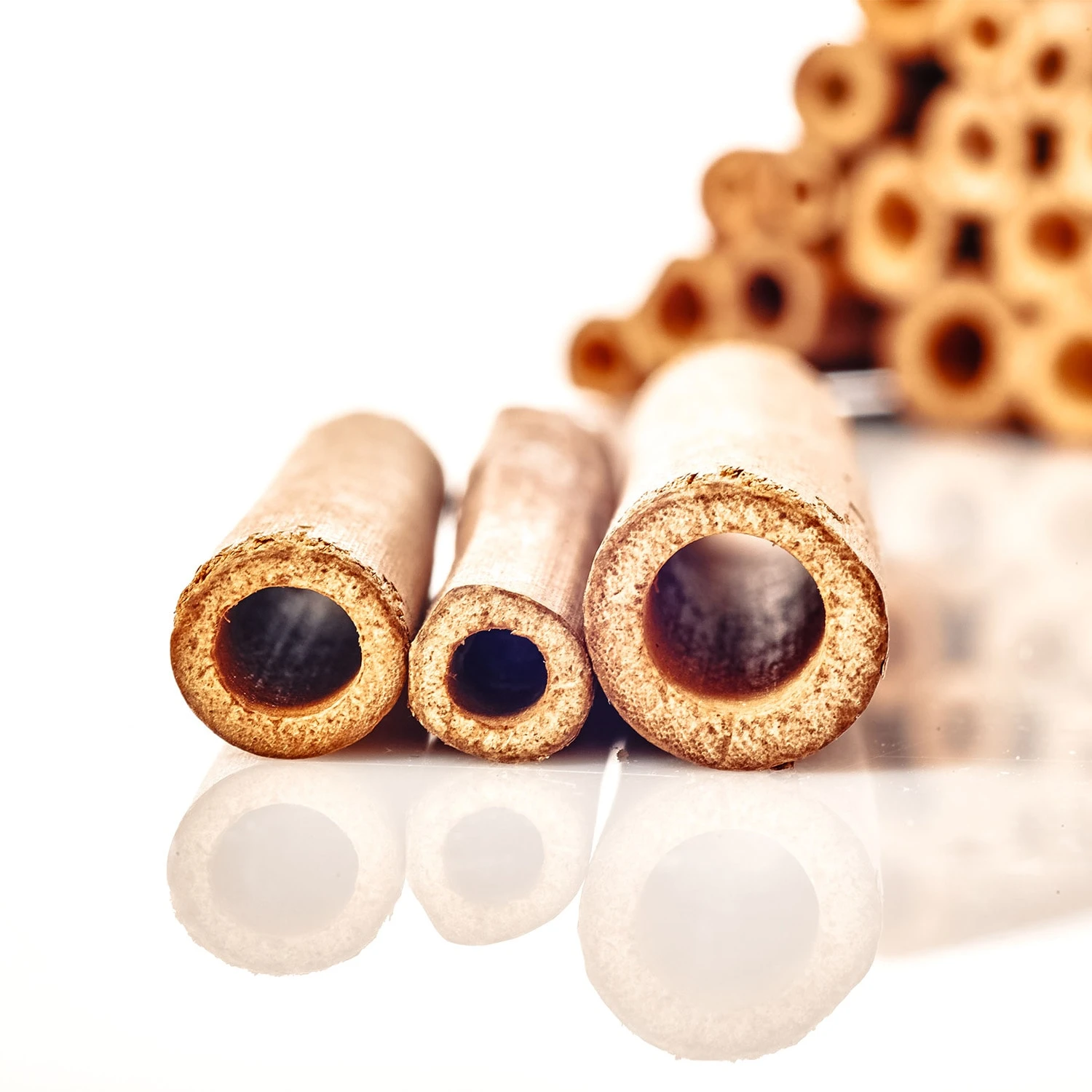 I tubicini di bambù sono particolarmente apprezzati dalle api muratrici, ma sono ottimi anche per api intonacatrici e tagliafoglie. Nei tubicini daranno vita a piccole camere di covata, che riempiranno con provviste e un singolo uovo.