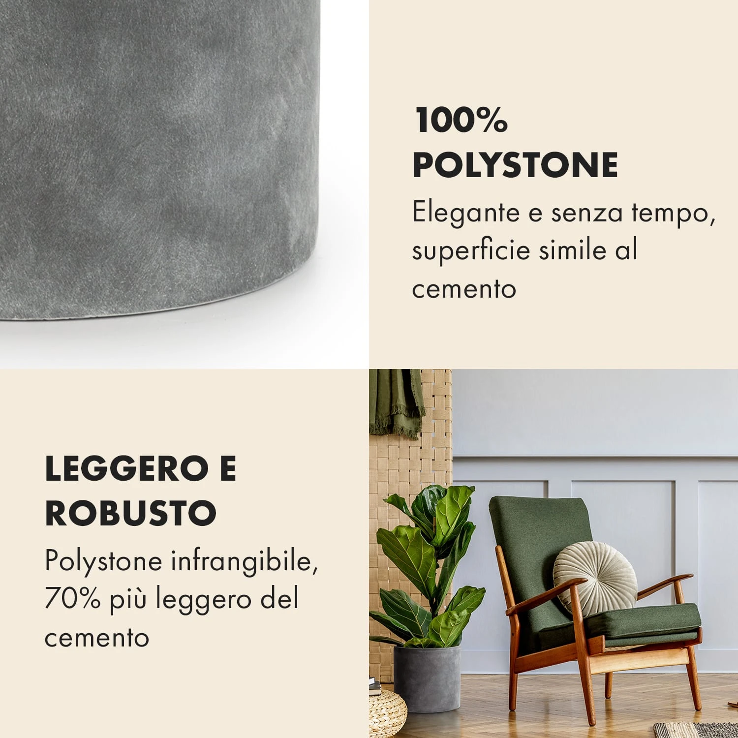 Dai una nuova casa alle tue piante: nell’elegante fioriera Venlo di Fox & Fern by blumfeldt in robusto polystone i tuoi verdi coinquilini si sentiranno perfettamente a loro agio e godranno di una crescita rigogliosa. Il polystone è un materiale realizzato dalla combinazione di pietra, cemento e fibra di vetro, che risulta particolarmente robusto e duro, restando però sensibilmente più leggero rispetto alla pietra naturale. È un materiale ideale per le piante e ti permette di piantare direttamente nella fioriera Venlo fiori, erbe aromatiche, cactus o piante da camera. Il vaso Venlo garantisce anche un livello di umidità perfetto, grazie all’apertura di drenaggio sul fondo. Con l’apposito tappo, puoi aprire e chiudere il foro di scarico secondo necessità.