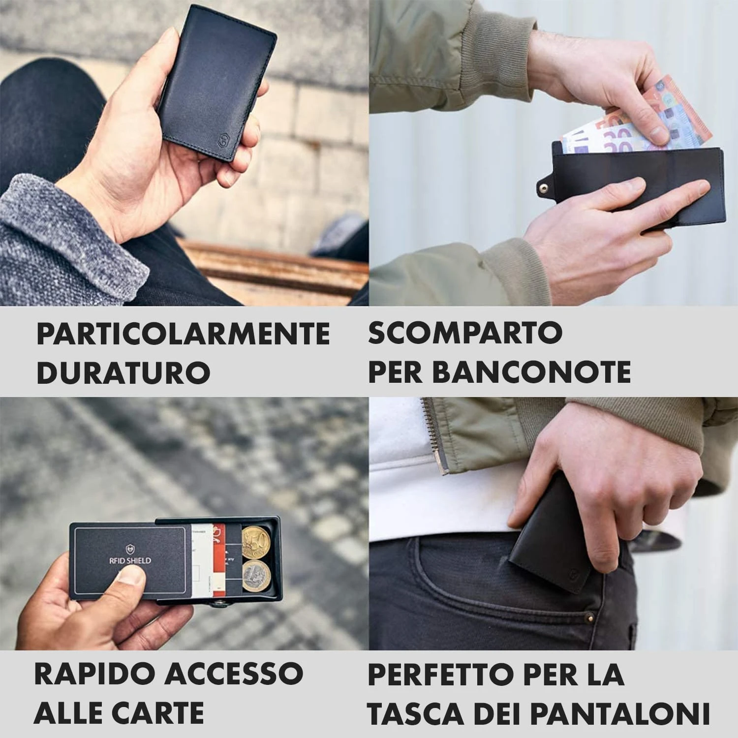 Ne hai abbastanza di portafogli grandi, poco pratici e disordinati? Con lo Slim Wallet ZNAP di slimpuro, il tuo portafoglio si rimpicciolisce fino alle dimensioni di 8 x 1,8 x 6 cm (LxAxP). Ovviamente, c’è ancora spazio per ben 12 carte, banconote e monete. Il mini portafoglio, con il suo robusto alloggiamento in alluminio e la scheda RFID, protegge le tue carte bancarie dal furto di dati. Nello scomparto di alta qualità per le banconote potrai conservare fino a 200 Euro senza bisogno di piegarle. Con i numerosissimi colori e design a disposizione, tutti troveranno lo Slim WalletZNAP ideale.