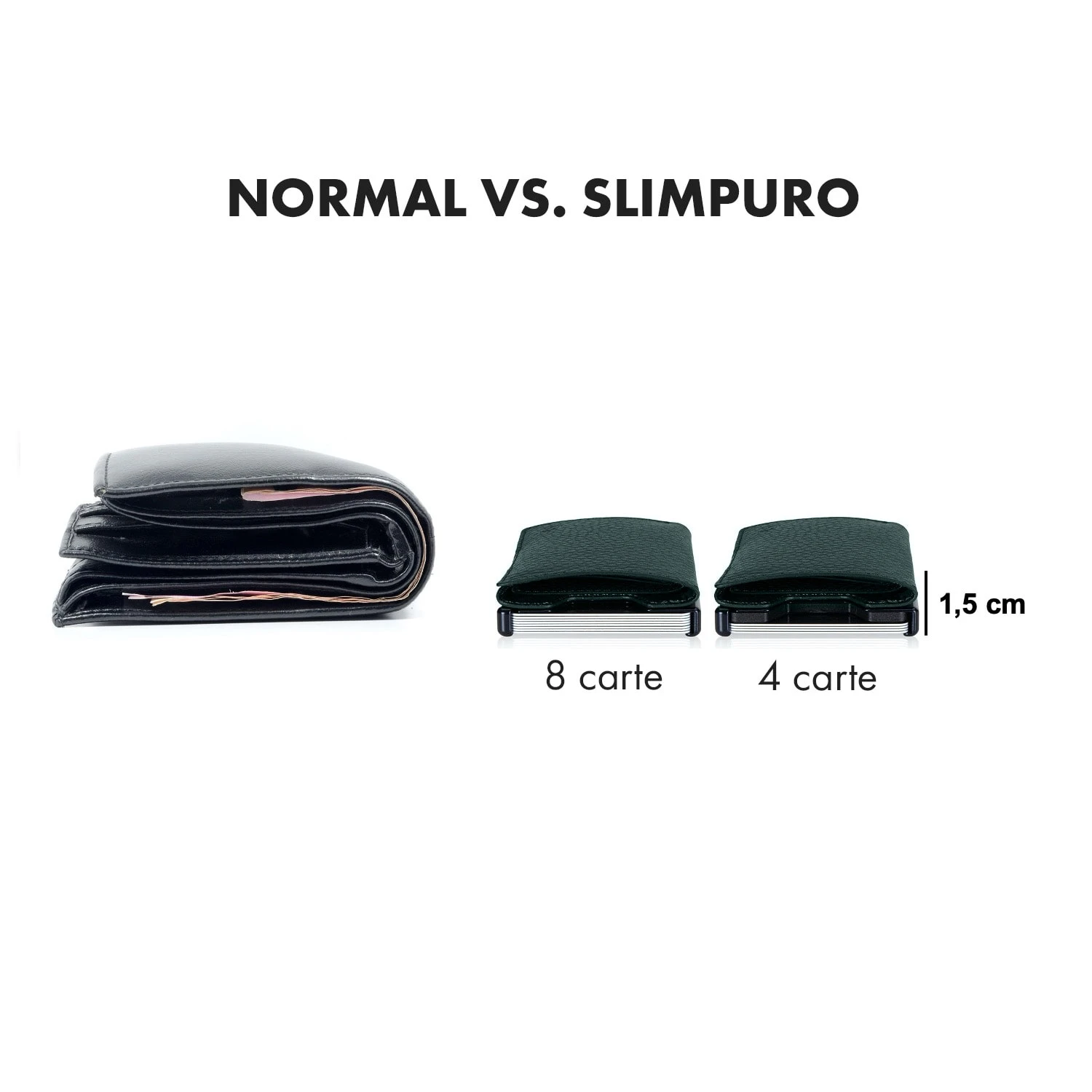 Ne hai abbastanza di portafogli grandi, poco pratici e disordinati? Con lo Slim Wallet ZNAP di slimpuro, il tuo portafoglio si rimpicciolisce fino alle dimensioni di 8 x 1,5 x 6 cm (LxAxP). Ovviamente, c’è ancora spazio per ben 8 carte, banconote e monete. Il mini portafoglio, con il suo robusto alloggiamento in alluminio e la scheda RFID, protegge le tue carte bancarie dal furto di dati. Nello scomparto di alta qualità per le banconote potrai conservare fino a 200 Euro senza bisogno di piegarle. Con i numerosissimi colori e design a disposizione, tutti troveranno lo Slim WalletZNAP ideale.